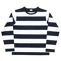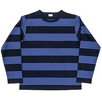 正直、加工物はやるか最後まで悩みました。というのも、このデニムはキバタ。まったくの未整理・未加工の生地で、製品洗いにあまり適していないのです。洗い加工をすると、普通に着て・洗ってを繰り返した時には出てこないようなシボが出てきてしまう。でも、色落ちしたGジャンにボーダー、そのイメージを形にしたかったので極力シボを抑える処方で加工しています。ただ、色落ちを見る感覚は千差万別。自分としては抑えたいシボも、かえってそれが好きという人も居るので難しい所です。自分だけの一着・色落ちを目指す方は是非ワンウォッシュをお選びください。でも、軍パンにボーダー、色落ちしたGジャン。そんな組み合わせも捨てがたいですよね。 |