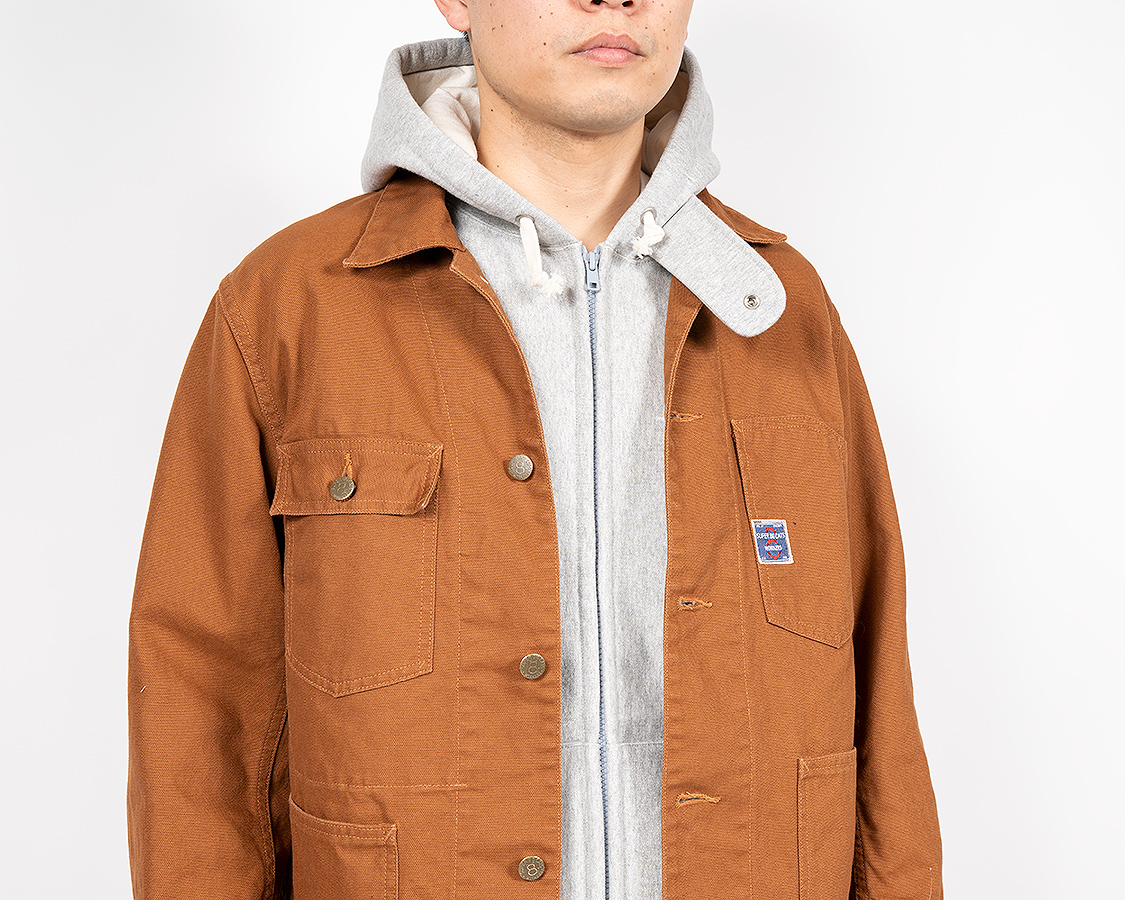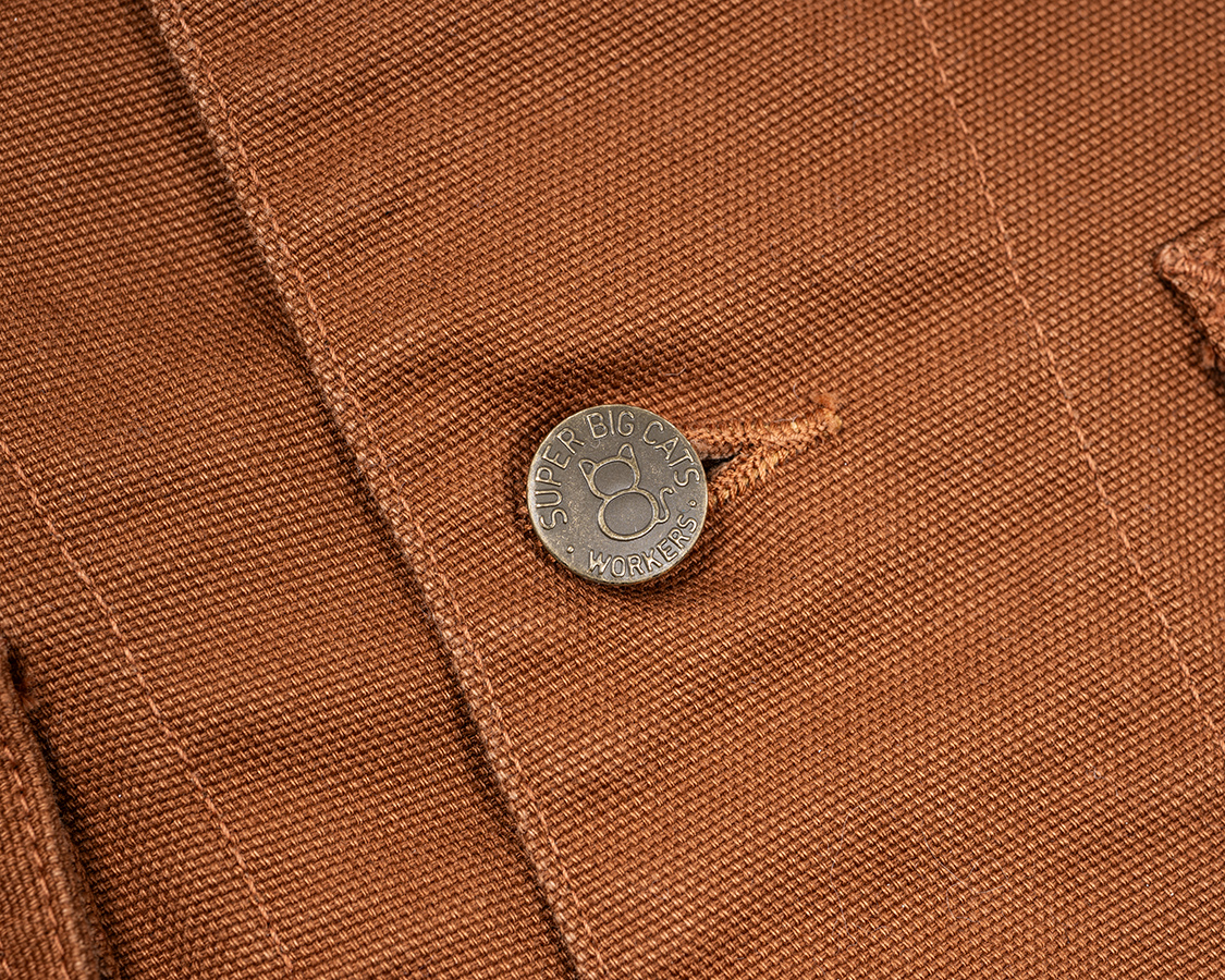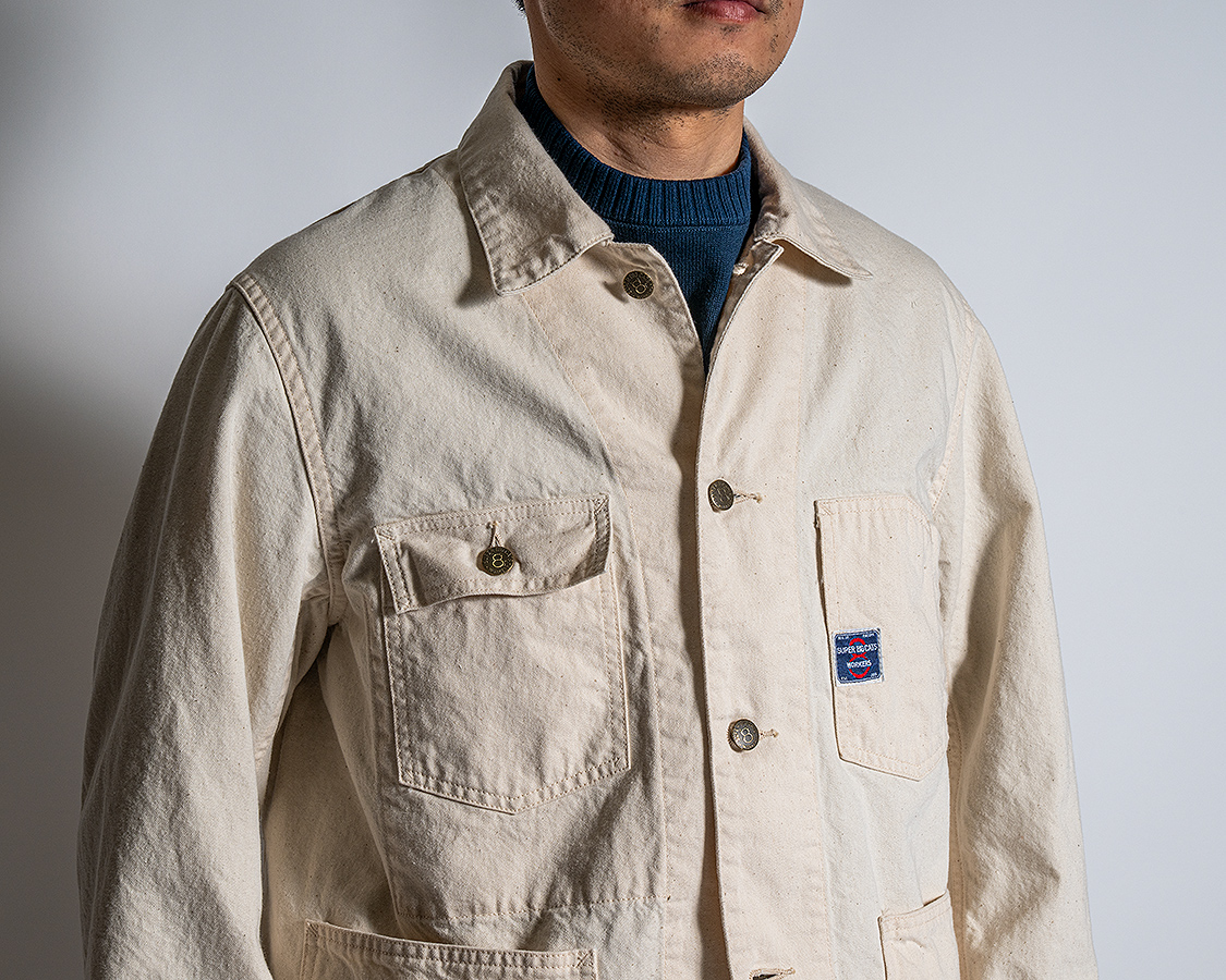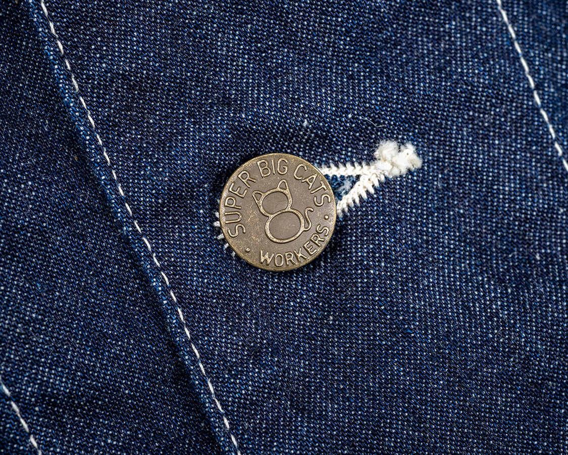 見本は後ろ中心のネームを付けませんでしたが、量産はWork Pantsと同じ大型ラベルをたたきつけます。
