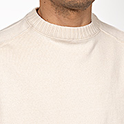 首・ 袖口共に折りかえりがあり、リブは「総針」というウネが無いもの。サドルショルダーの針抜きと比較してみてください。