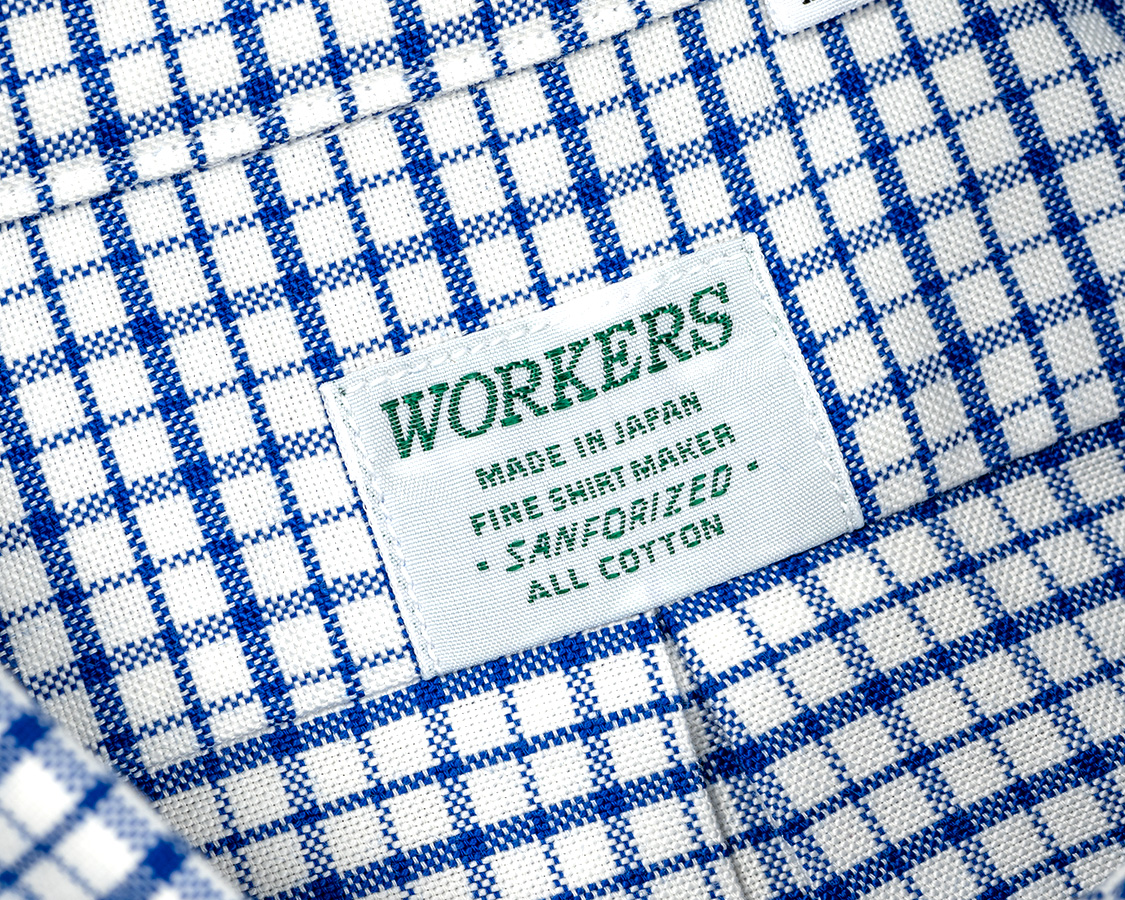 ネーム、今回は緑タグ。正直意味はありません、デザインです。昔の古着も同じようなタグなのに、黒だったり、赤だったり、緑だったりありましたよね?それが可愛い、だから再現。WORKERSの企画は「かわいいか」が大事なのです。
