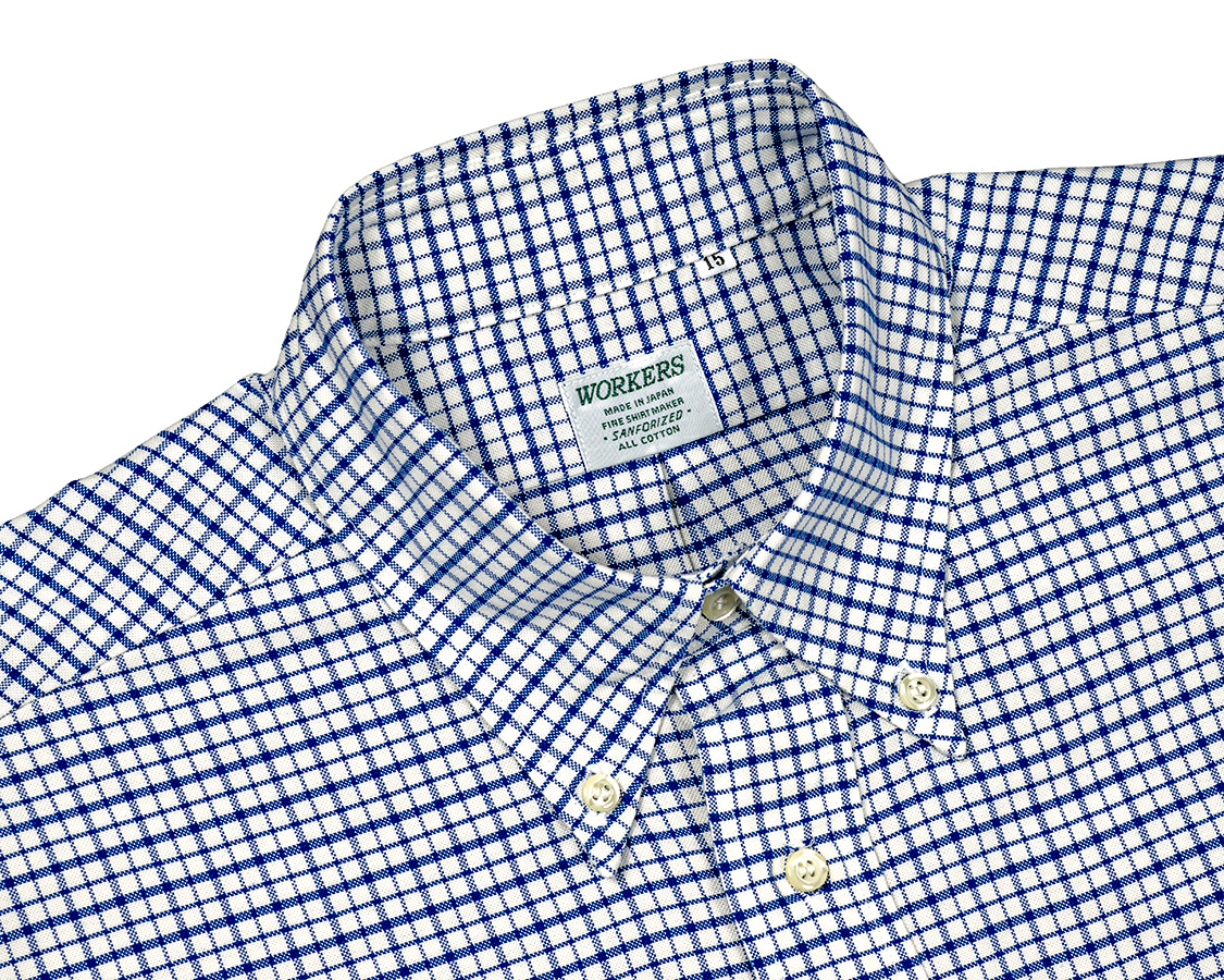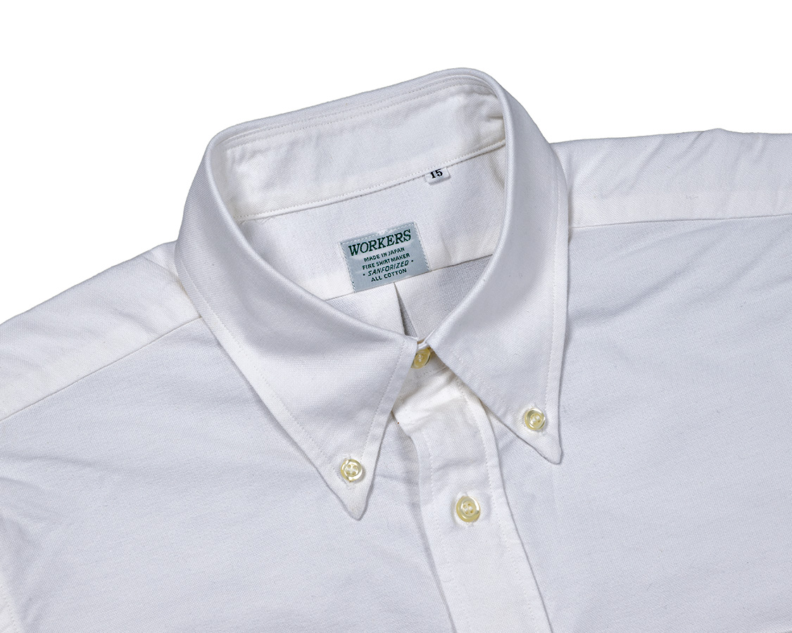 白の無地オックスは、いつものSupimaオックスより少し厚手、がさっとした手触り。昔のダンリバー「風」に作ってもらった生地。