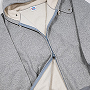 本家は化繊入り・カサッとしたスウェット生地に対し、WORKERS は表30番・中30番・裏7番の綿100。裏の糸ループを短く編み、 さらに起毛をかけた本格的冬用スウェットです。