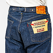 シンチバック無しの「Crotch River(股リべだけ)バージョンを私は買おうかな?バックポケットは上に向かって丸みがあり、やたら高い位置に赤ピスネーム。