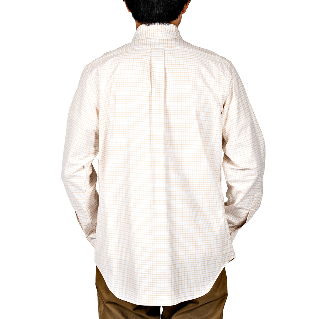 それに対し、Modified BDはもう少し丈が短い、袖も細い、袖口ボタン位置もごく普通の位置。タックインしても、前をあけてアウター的にも着られるサイズ感を目指しています。 |