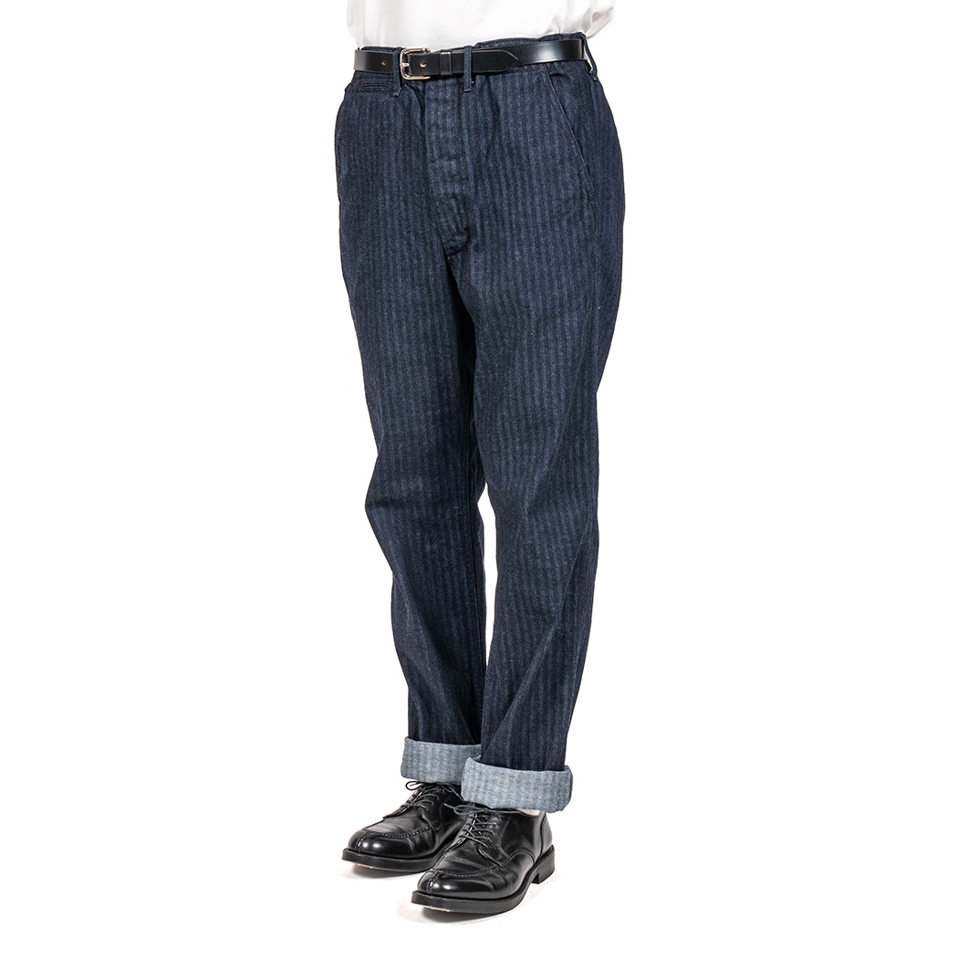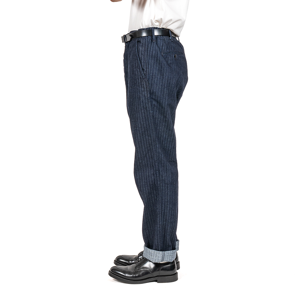 Officer Trousers Regular Type2, Indigo Herringbone |