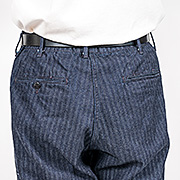 着こんで洗いこむと、徐々に柄がわかってくる、「育つヘリンボン」。10 オンスほどですが、チノよりしなやか。