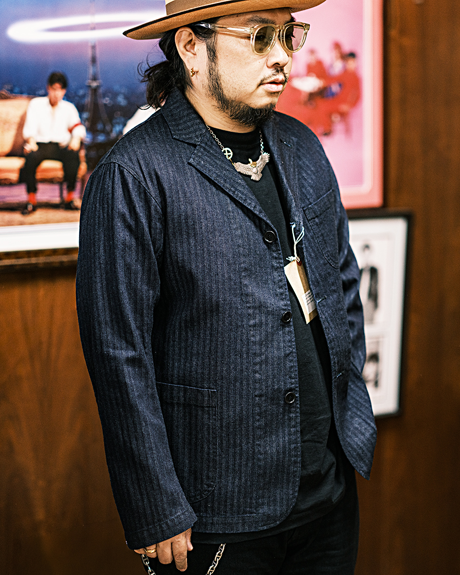 ・Lounge Jacket、見返しを身頃にたたきつけて、「カバーオール」的なジャケット。洗って育てられるジャケット。
