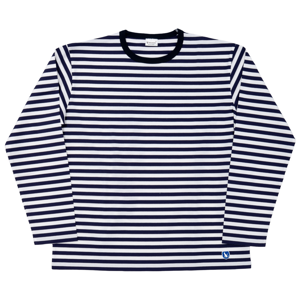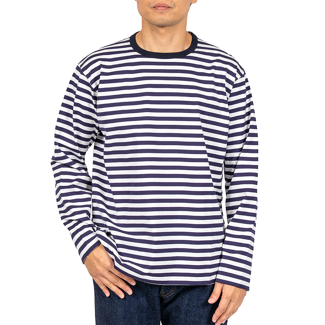 Border T, Long Sleeve, c#D/ Trim White x Narrow Navy |