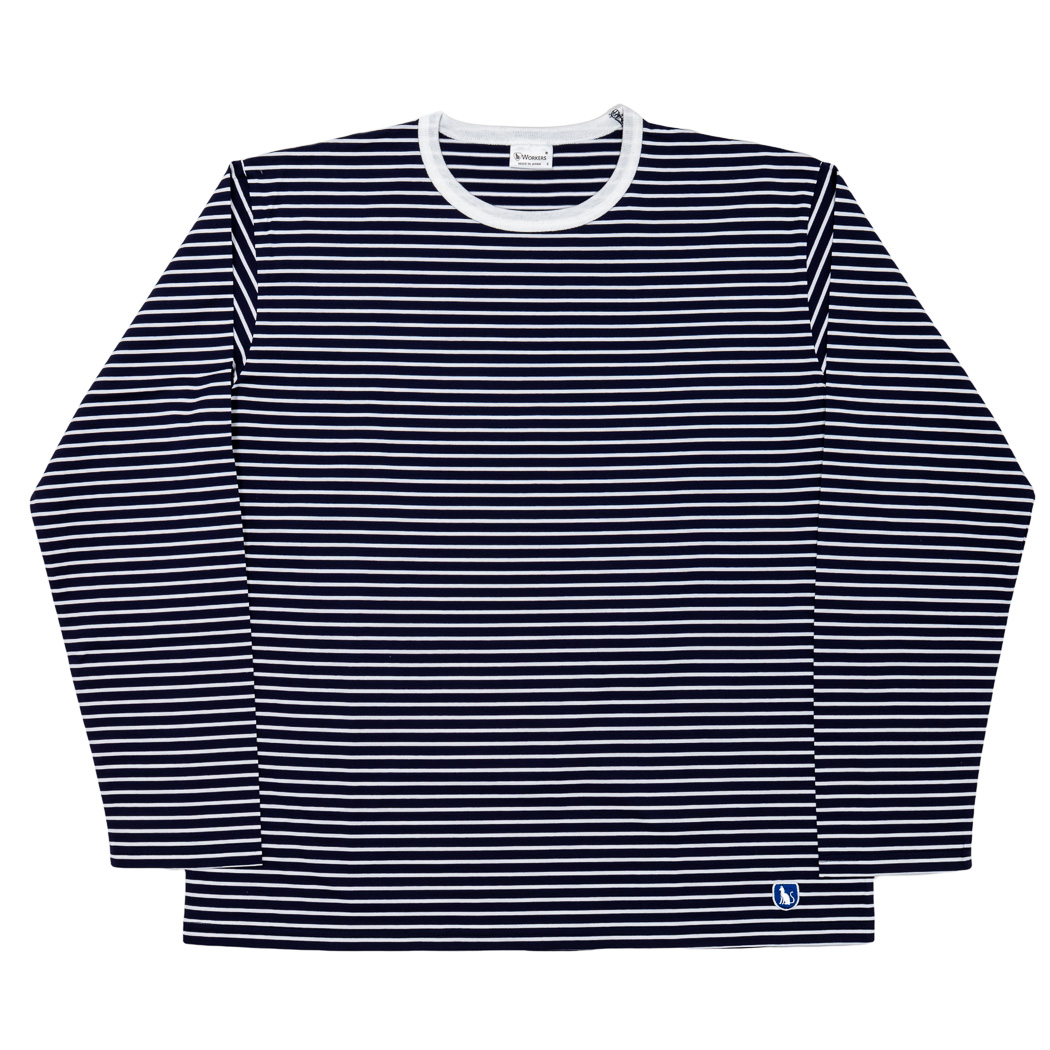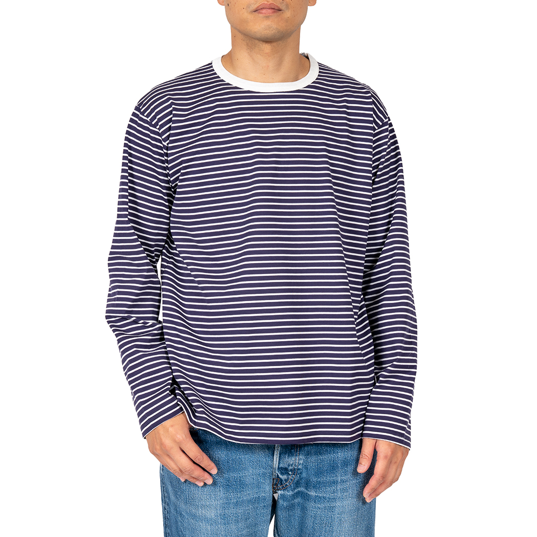 Border T, Long Sleeve, c#D/ Trim White x Narrow Navy |