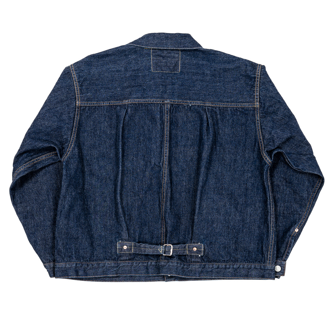 大きいサイズのGジャンを、幅の狭いセルビッジデニムで作るため、背中に割りのある仕様。。