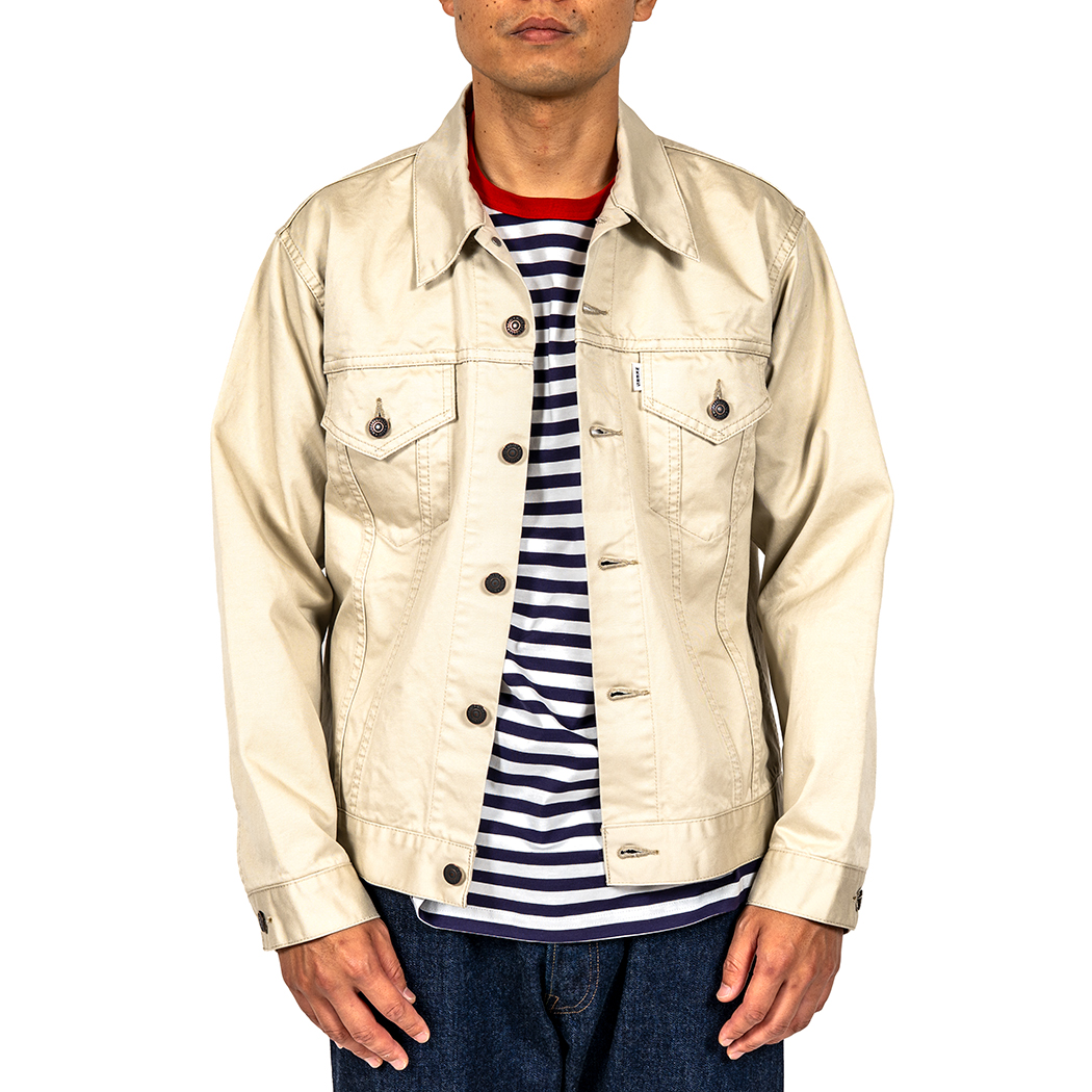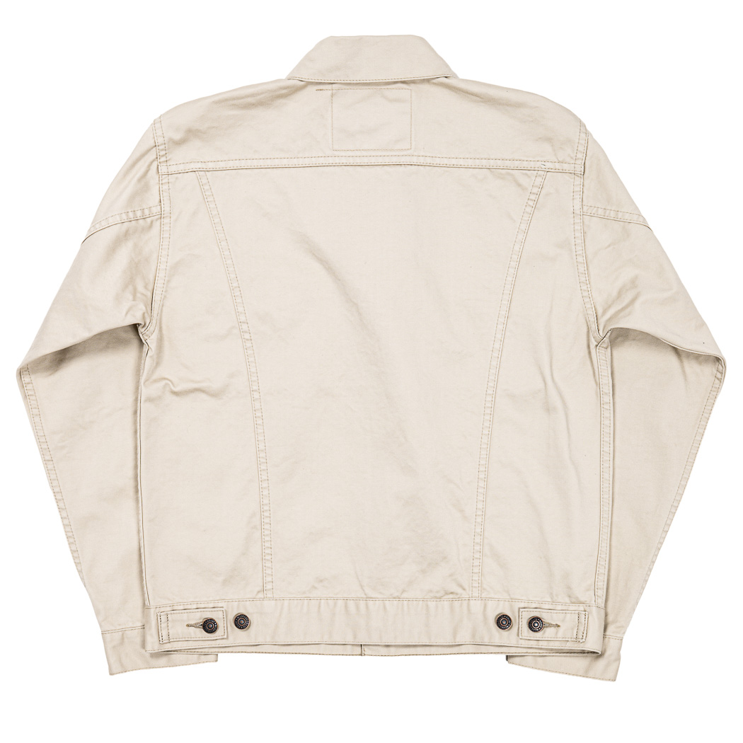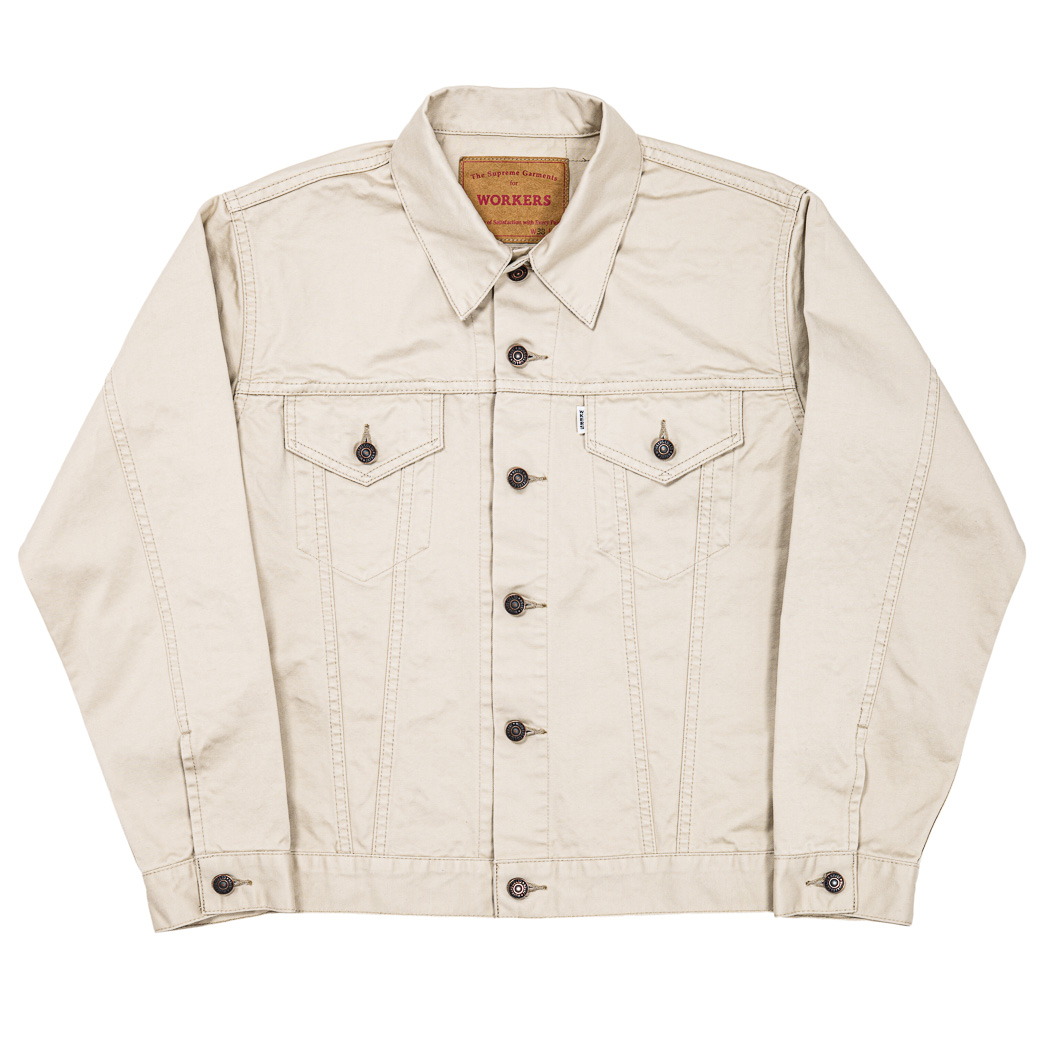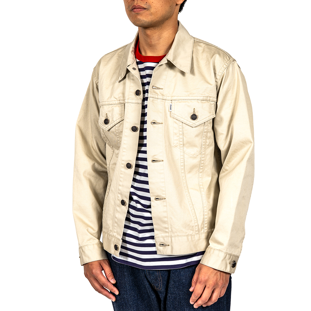 タブもホワイトタブ。ツイル、綾織り生地で作ろうとオリジナルを参考に探すと、どうも普通のチノ/ウェポンと違う。