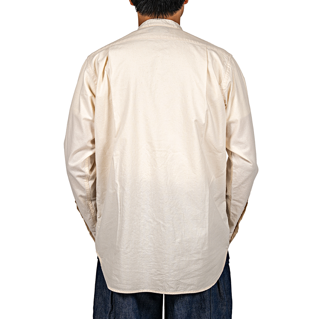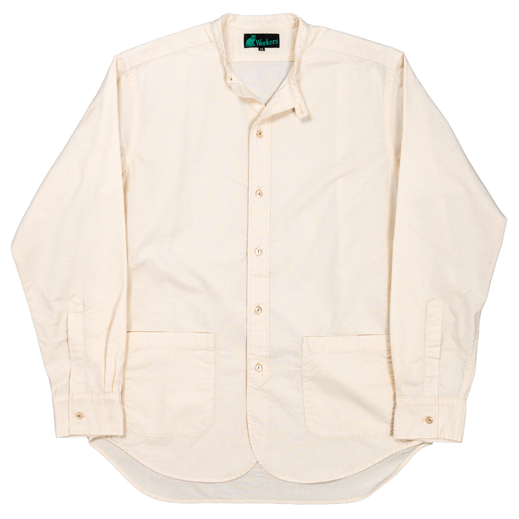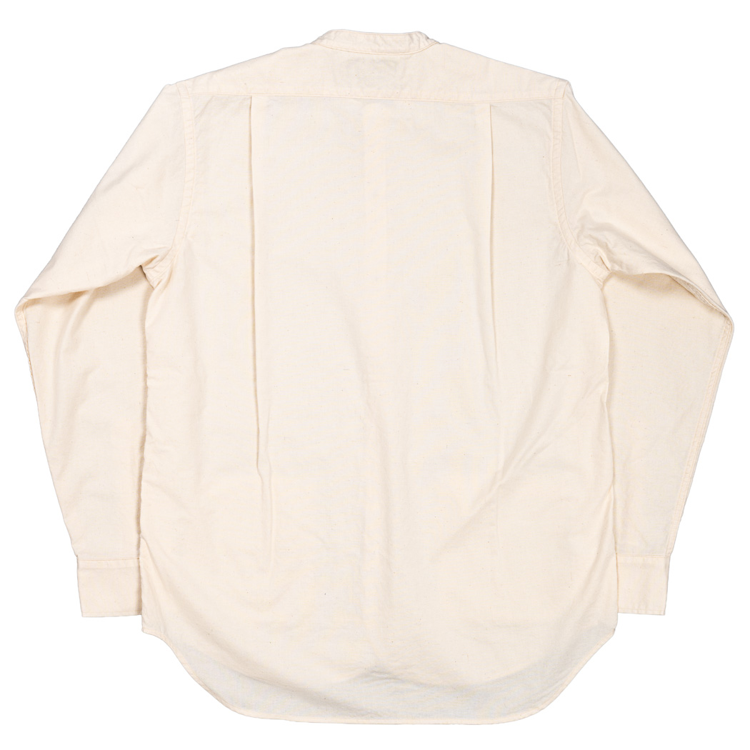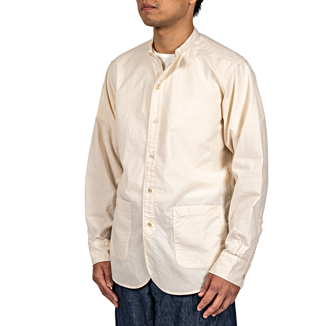 ただ、襟がジャケットと同じ太さだと太すぎてバランスが悪いので、ビンテージのバンドカラーシャツを参考に幅を細く修正。