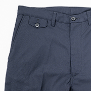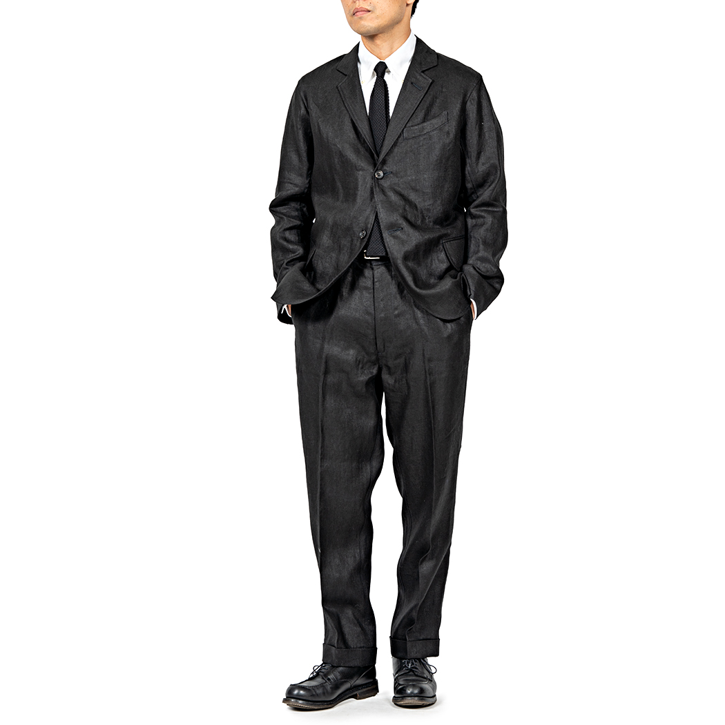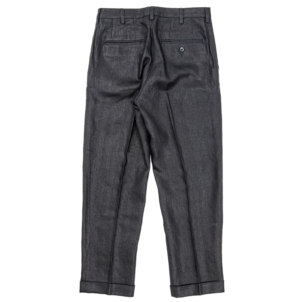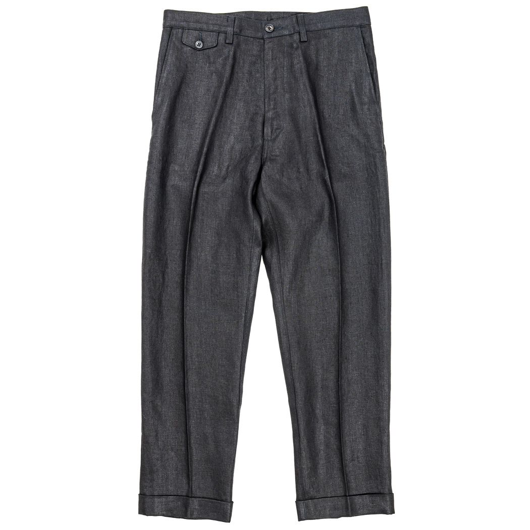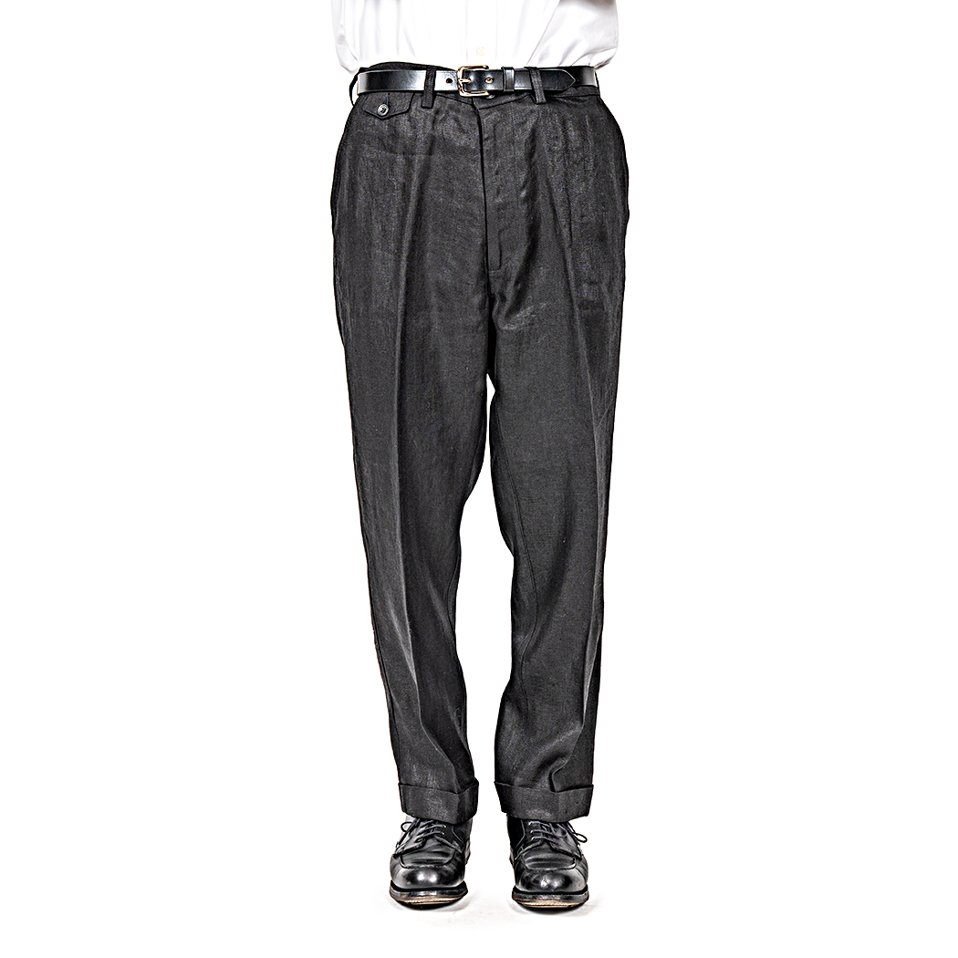 Moonglow Jacket とセットアップになるトラウザーズ。素材、「シワを楽しもう」がフレンチリネン。リネンはシワが出てなんぼですが、そのシワが汚く感じない。ジーンズのヒゲやハチノスが「良いな」と感じるのと同じ。着こんで、自分の体に沿ったシワが美しい。