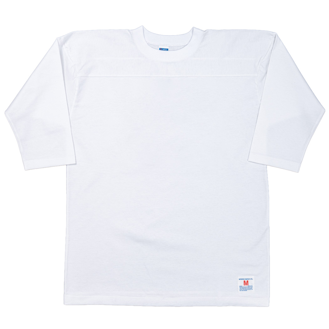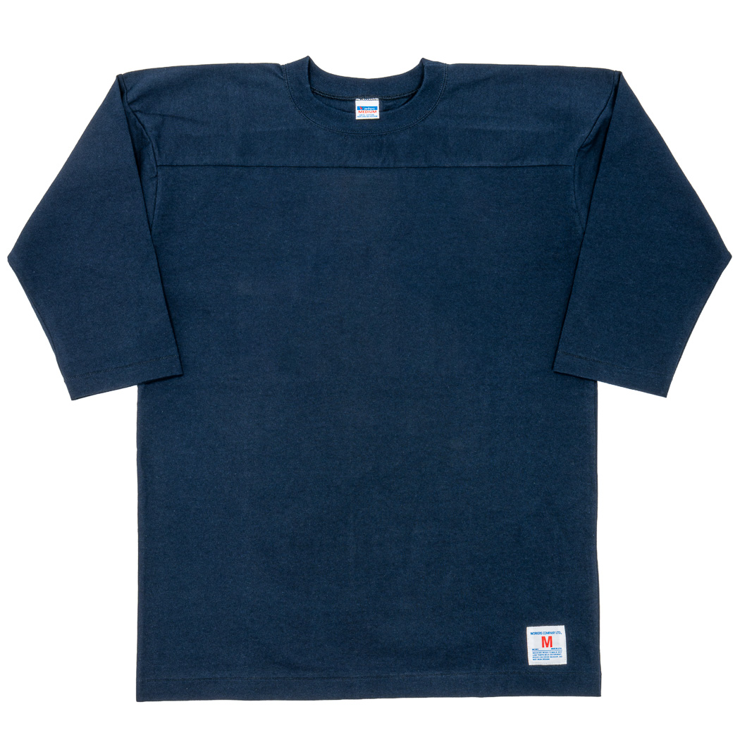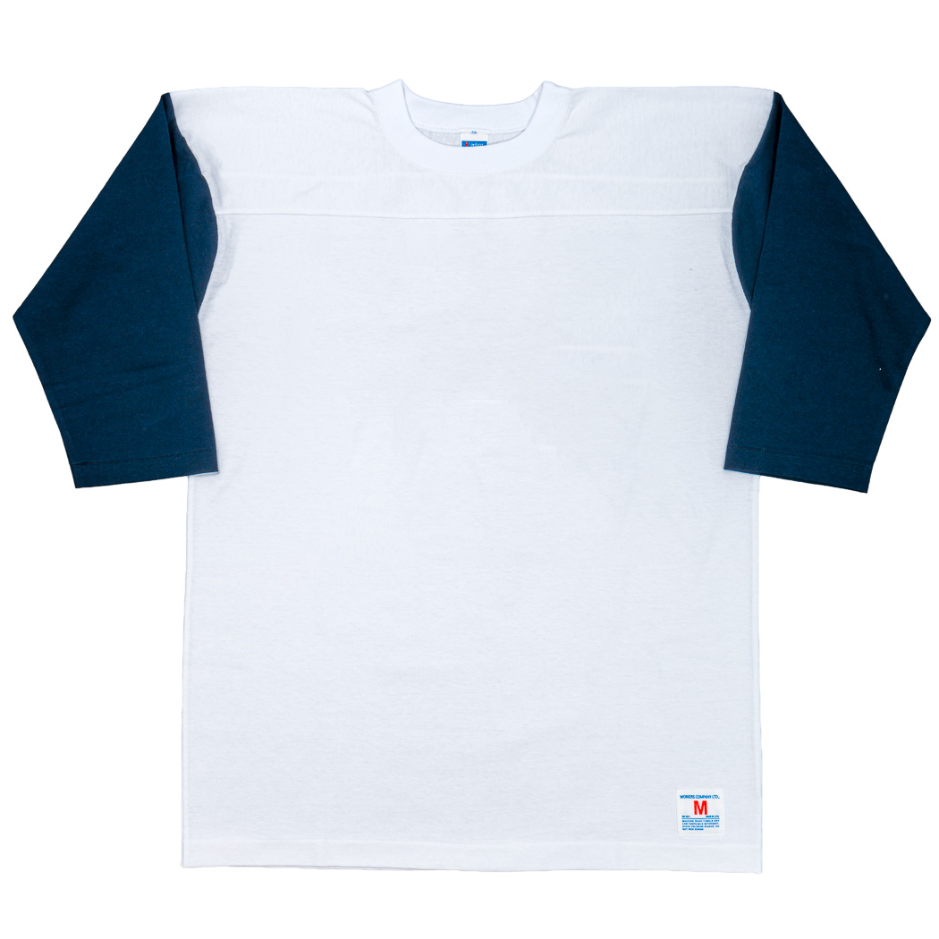 フットボールT。 ビンテージを集めパターンを研究。肩部分に縫い目が無い。肩先で謎の出っ張りがある。特徴はつかめたのですが、実際に着て良いバランスにするのが難しく、サンプルを4 回も作り直ました。やはり、WORKERS、まだまだカットソーの型紙の蓄積が足らないです。良い勉強になりました。