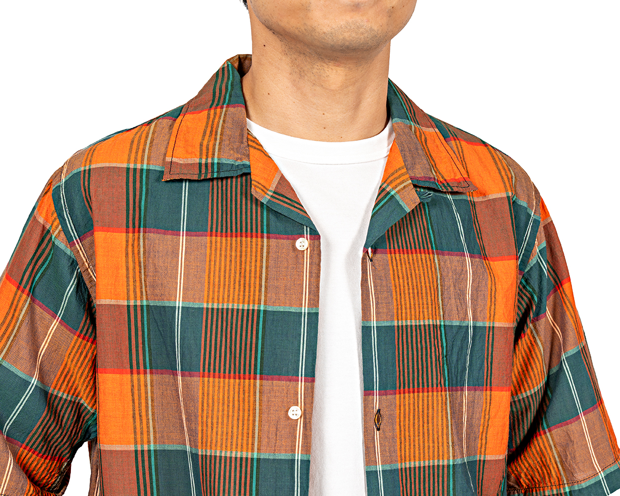 Open Collar Shirt, Ecru Linen Open Collar Shirt, Black Linen Open Collar Shirt, Orange Madras Open Collar Shirt, Fish Block Print