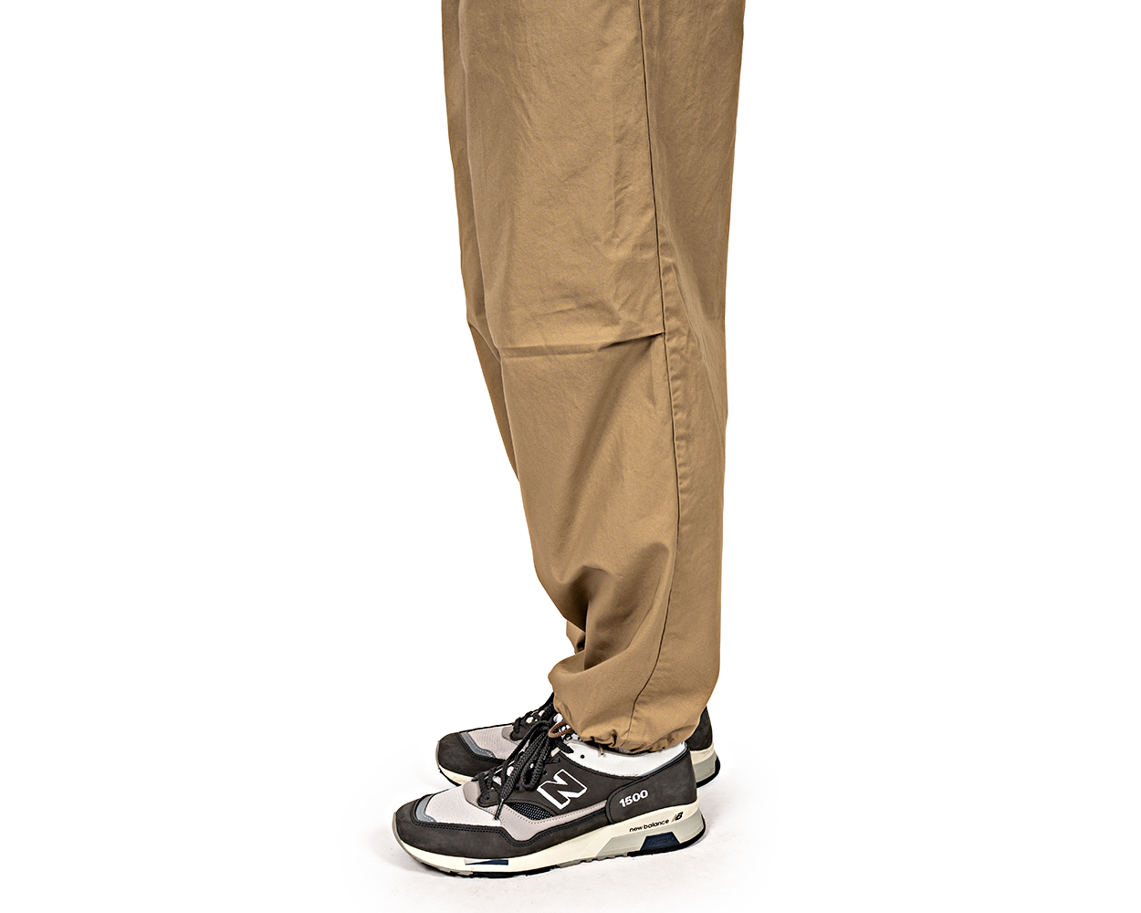裾、絞らずに折って穿くとこんな雰囲気。さらに、紐を抜いてしまっても良いと思います。