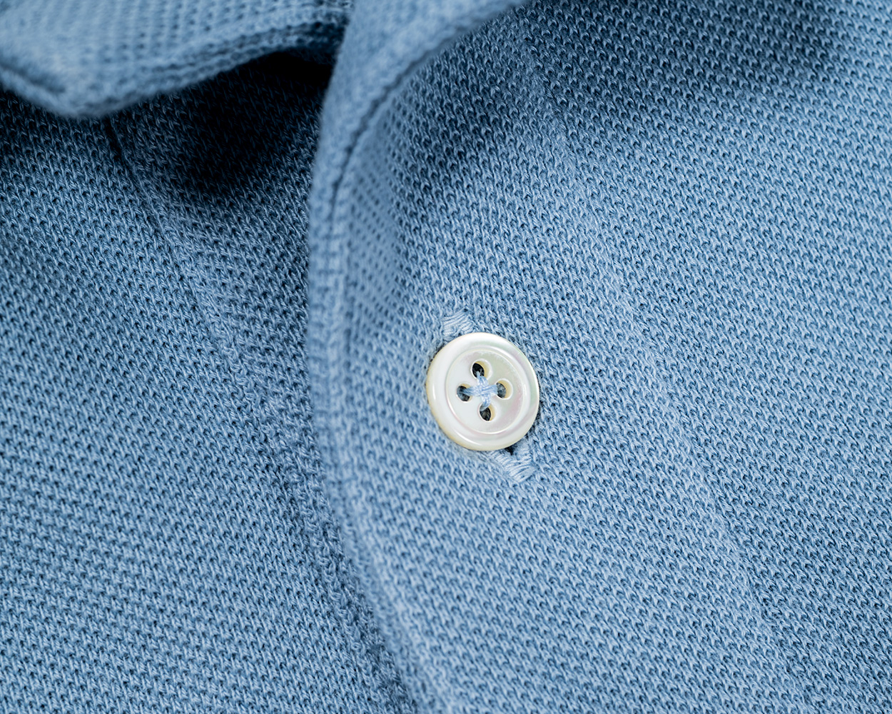 このボタン自体、強度はあるのでご家庭の洗濯+天日乾燥ではまず割れません。が、染め工程で最後に乾燥機入り、その熱がかかるとどうしても割れることがある。そのため後付けにしています。