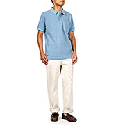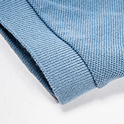 ポロシャツは一見、「T シャツに襟がついたようなものでしょう?」と思われるがちですが、縫製工程・生地・付属が全 く違います。襟・袖口は横編み機での編み立て。肩・襟回りには伸び止めテープ。