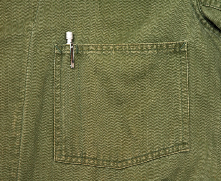 ポケット口は逆ハの字に、ペン刺しのステッチに沿うように縦にと、それぞれ、カンヌキの方向にも工夫がこらされています。