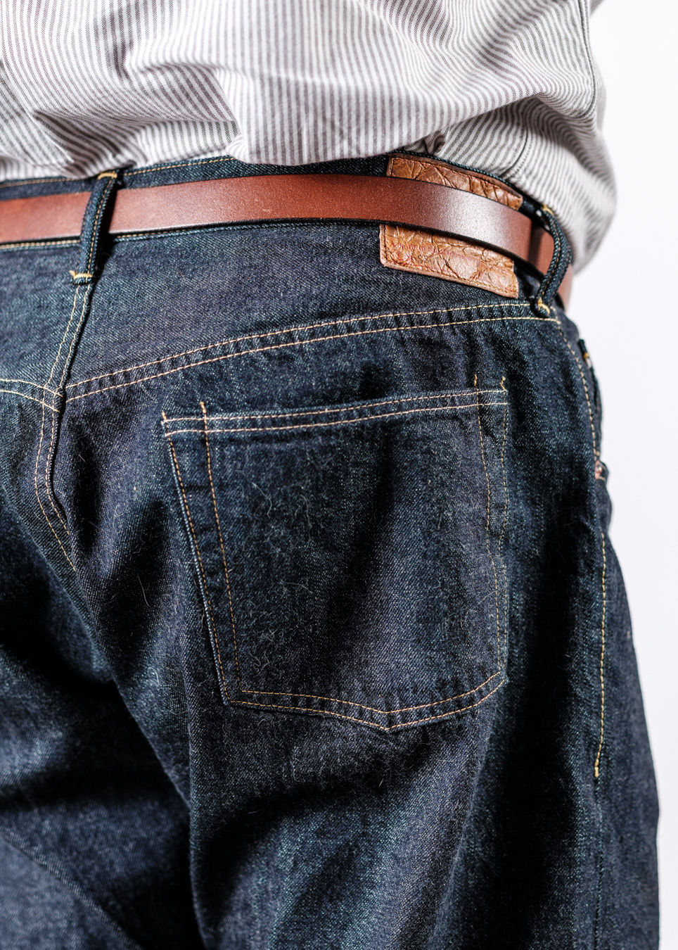 そういうこまか~い事が積み重なって、ジーンズは独特な立体感が生まれてきます。アップにするとよくわかる。