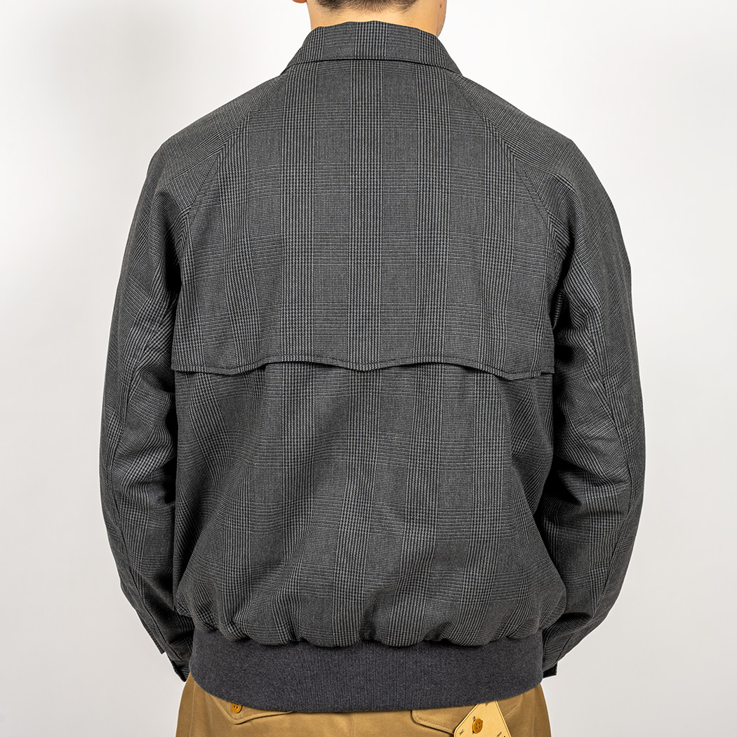 ビンテージのインバーティアを参考に作りました。 パターン自体そのインバーティアはあまり着心地が良くない。前肩部分が突っかかる感じがするので、必要なゆとりを出 して修正。袖は 1枚物のラグラン。袖口は、YANK 風で開きの無いカフス。この仕様、本当によくできていて、「袖幅にゆとりは出しながら、ボタンで袖口の寸法調節があり、しっかり袖口を締めて風は防げる」。唯一の弱点は開きが無いから袖まくりがしづらい事。でも、アウターは袖をまくることが無いので、今回のブルゾンにこの仕様はパーフェクト。
