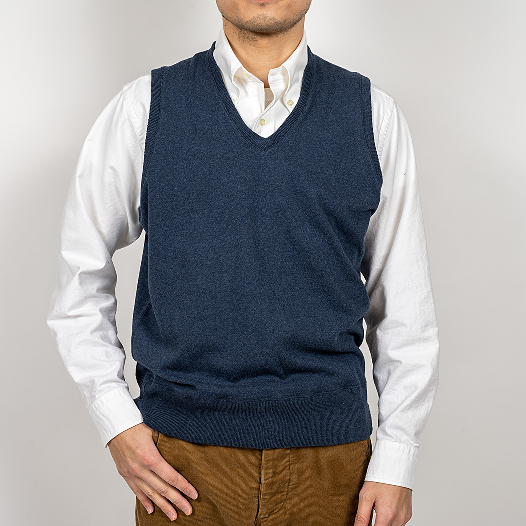 あのかっこよさの原因、一つはフィット感にあると思います。ベストというとどうしてもぴったりフィットで作りがちですが、ラフに着るには少し、「ほんの少し」ゆとりが要るのです。この「少し」がポイント。ゆとりがありすぎると、街中で若い子が白シャツにゆる〜いベストのあれになってしまいます。