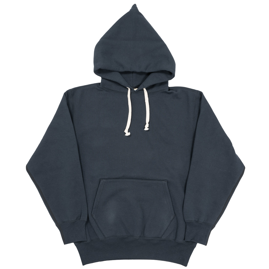 表30 番・中30 番・裏7 番で、裏の糸ループを短く編み、 さらに起毛をかけた本格的冬用スウェットです。ガチガチに目を詰めて編んでいるので形崩れしにくい。重さは15 オンス程あり、いわゆる「超ヘビーウェイトスウェット」