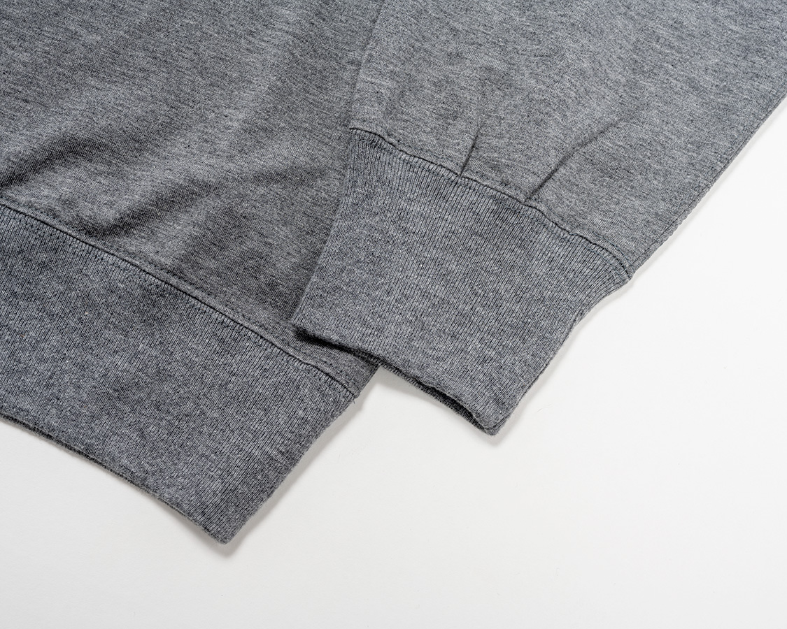左胸ポケット。ビンテージスウェットだと実はポケット付きは少ないのですが、スウェット「らしさ」も感じられて良いなとポケット追加。角は三角、線ではなく面で補強することでポケットが取れづらいように。