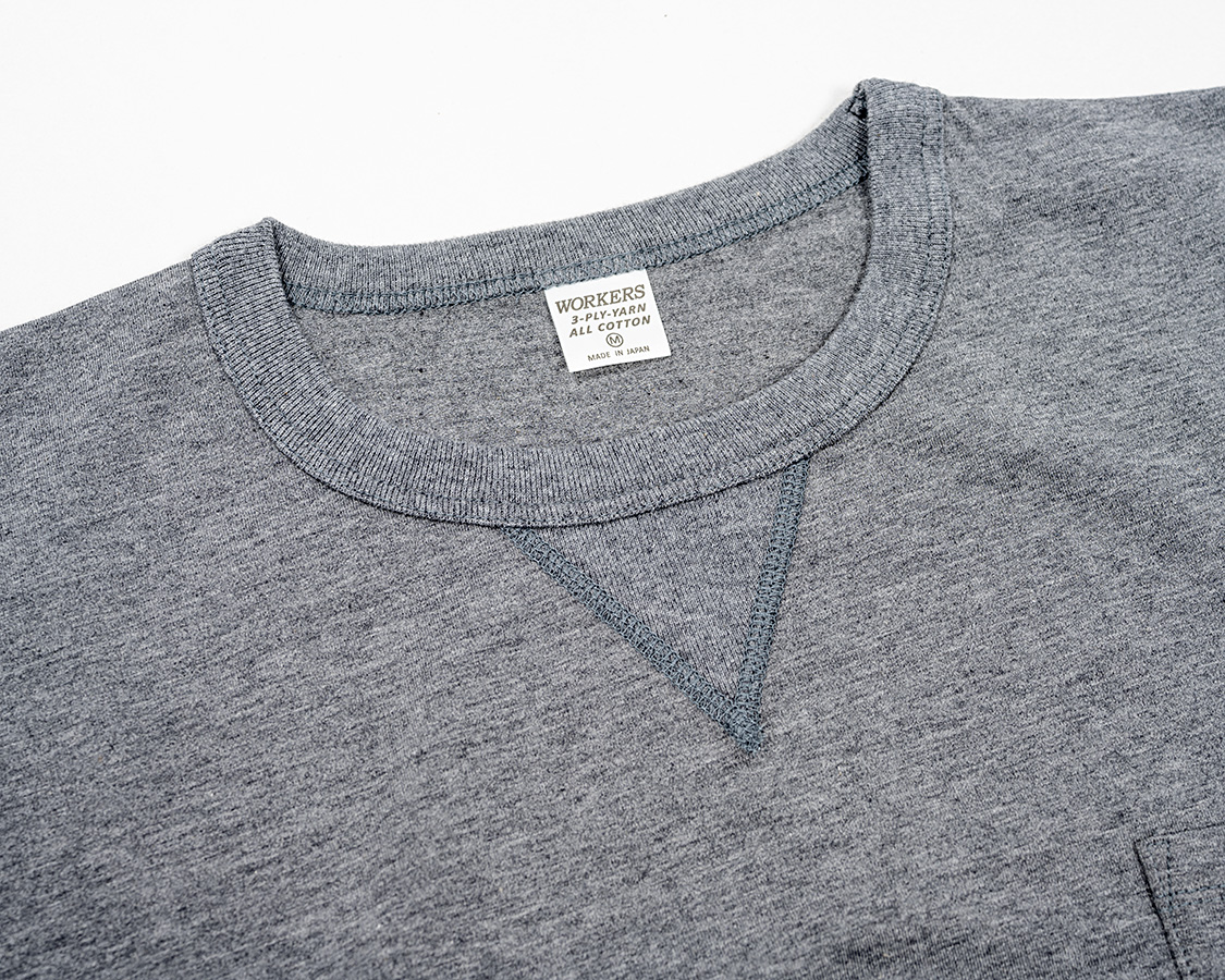 3-PLY-YARN、わざわざ専用ネーム作ってます。ビンテージの洋服見ていて、確か2-PLYだったか・・・でこういう専用ネーム作っているものがありました。「昔の人も材料が違うんだ!って言いたかったんだよなぁ」と共感。素材、特に糸の撚り本数は大事だけどぱっと見ではなかなかわかってもらいづらい部分。