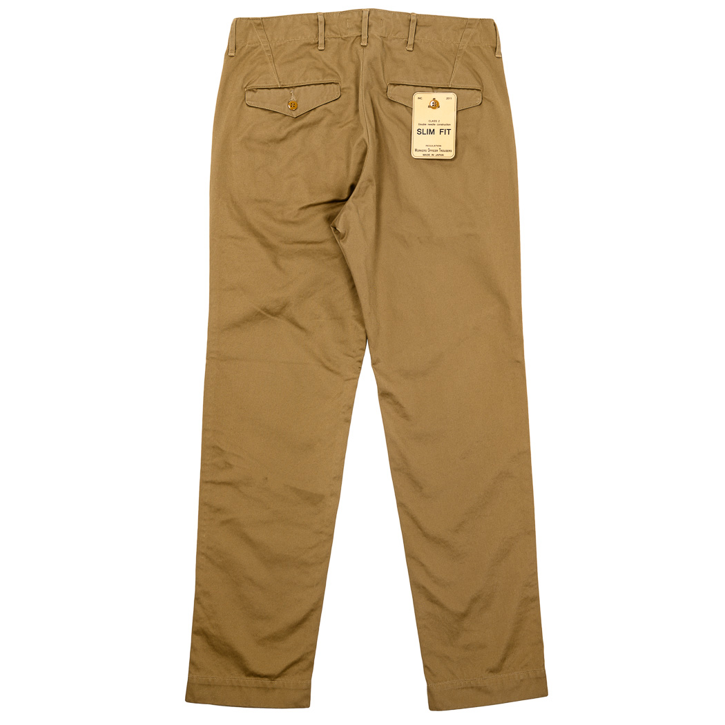 おなじみ、古今様々なチノパンを混ぜて作ったWorkers Officer Trousers。Slim Fit 「Class 2」、脇巻き縫い・ダブルステッチバージョン。