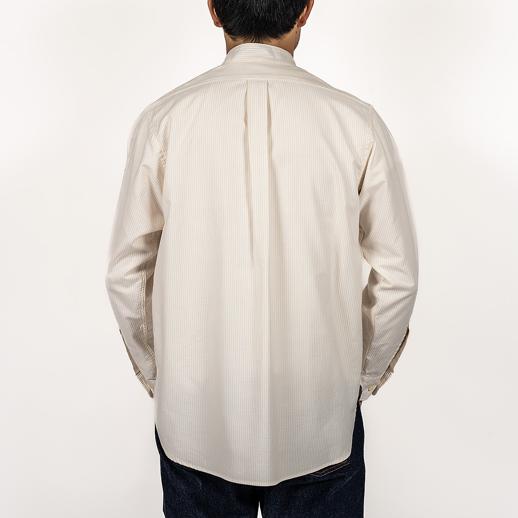 Band Collar Shirt, Ecru Stripe Supima OX |