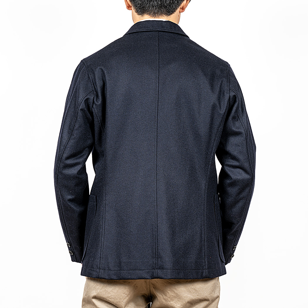 ジャケットの体が拘束される感じを弱める。アームホール/ 肘/ 袖口を少しゆとりをつけて中にシャツ+ 中厚ぐらいの セーターが着られるように。着丈は70であくまでカジュアル。