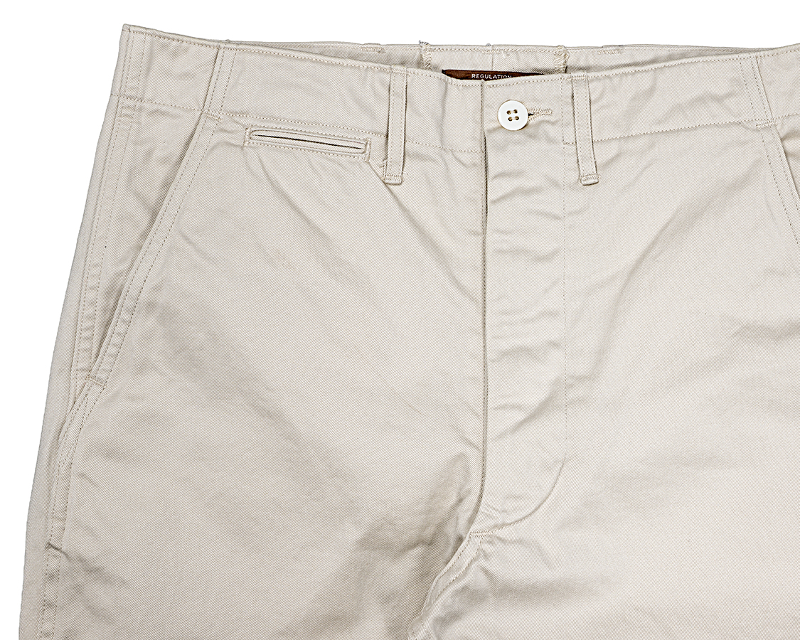 斜め切り替えポケット+細両玉のコインポケット。簡単そうで、この斜め切り替えを脇で巻き縫いが乗り越えるところ、厚みが極端に変わって縫うのが難しいのです。昔、自分で縫っても縫えないし、工場さんはみな嫌がるし。