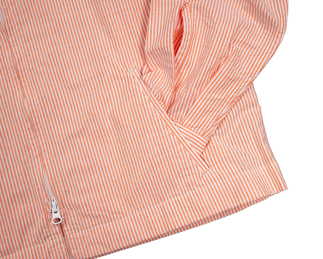 フロントはダブルジップ。下を開けるか?と言われると微妙ですが、腰が突っ張るとき、下を開けるとベントのような役割になります。