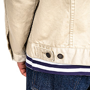 タブもホワイトタブ。ツイル、綾織り生地で作ろうとオリジナルを参考に探すと、どうも普通のチノ/ウェポンと違う。