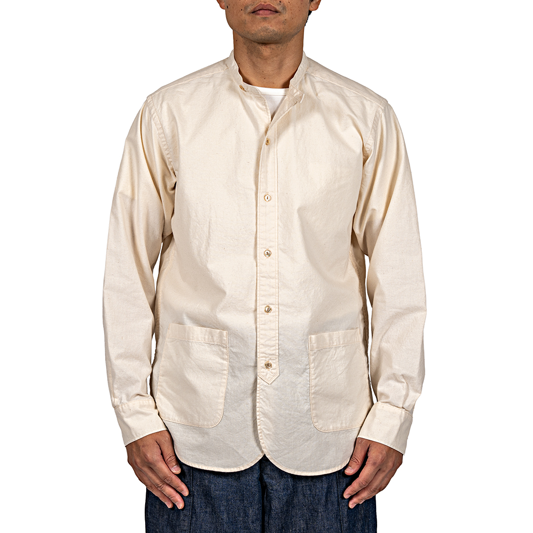 ただ、襟がジャケットと同じ太さだと太すぎてバランスが悪いので、ビンテージのバンドカラーシャツを参考に幅を細く修正。