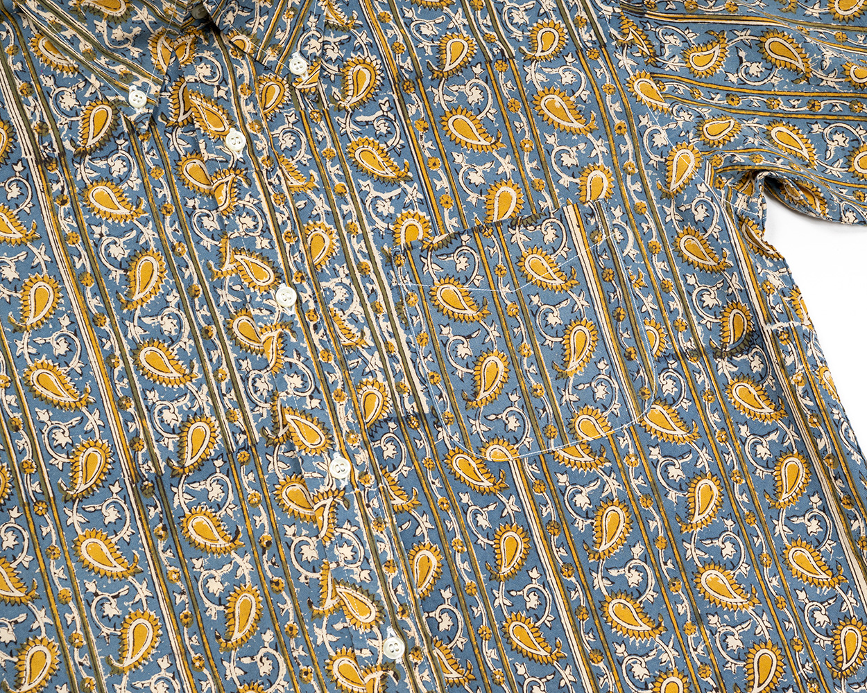 Modified Short Sleeve BD, India Block Print, Paisley |