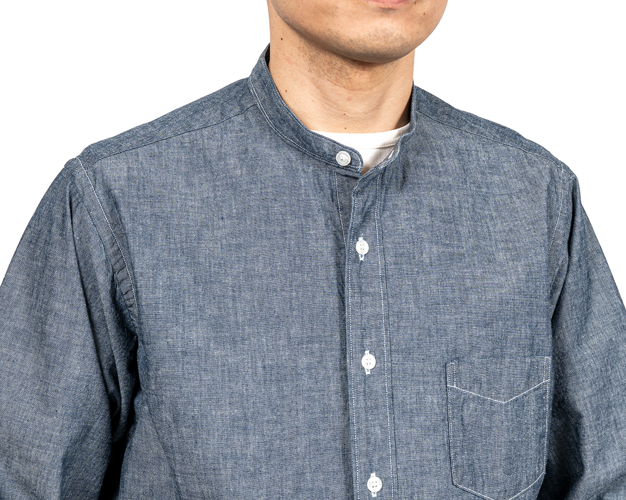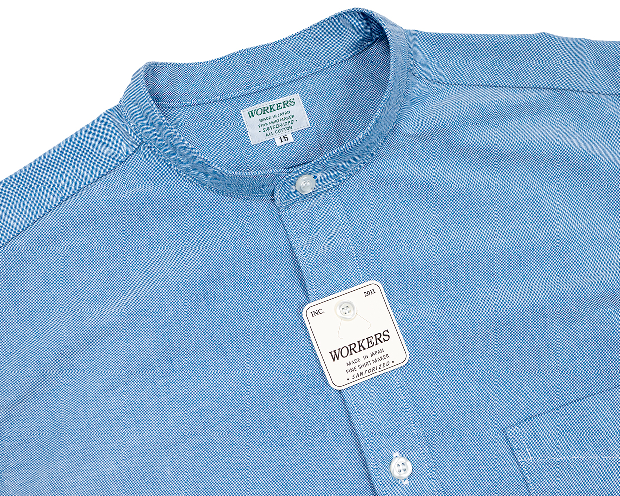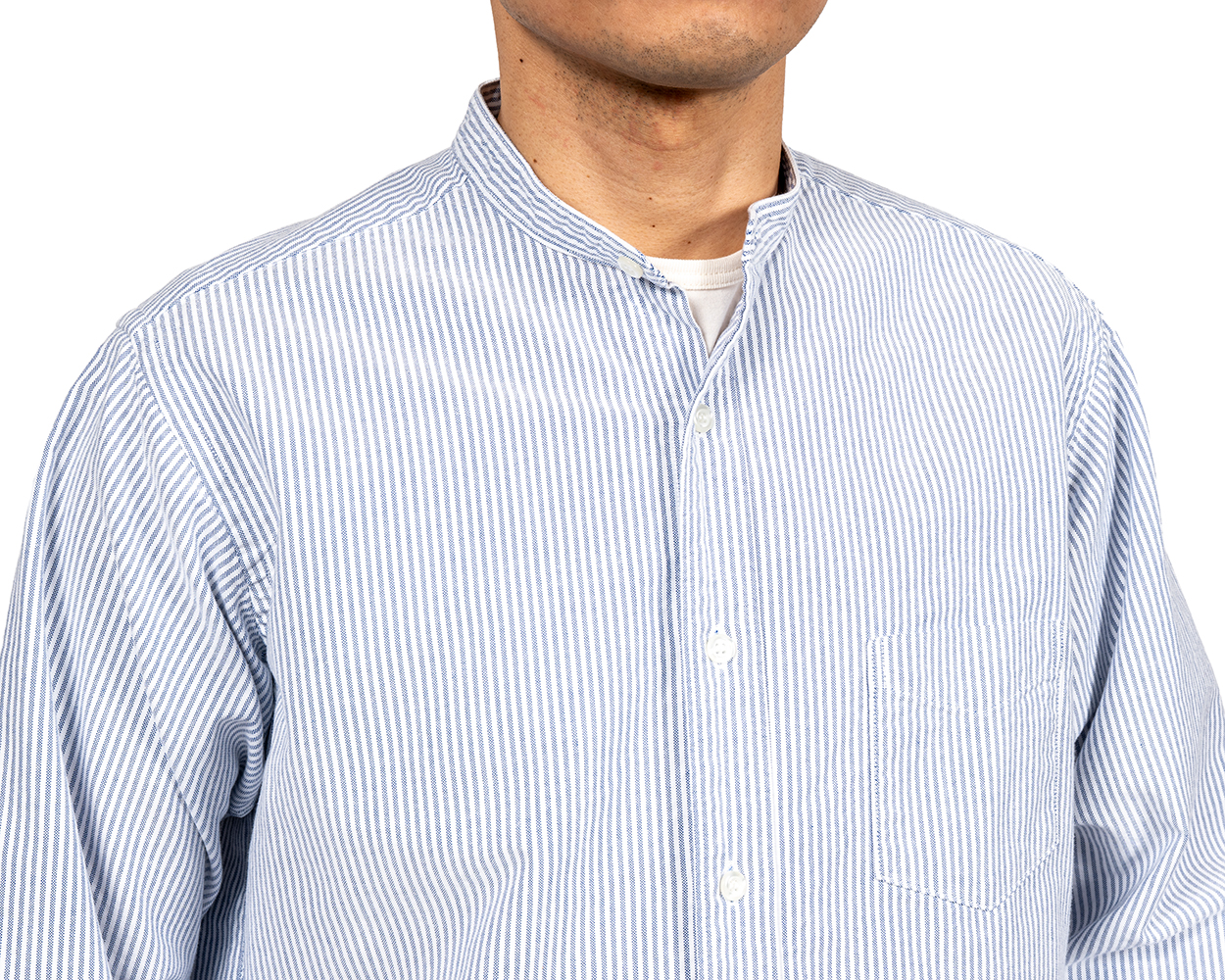 Band Collar Shirt, Supima OX, White Band Collar Shirt, Supima OX, Blue Pale Band Collar Shirt, Supima OX, Stripe Band Collar Shirt, Indigo Chambray