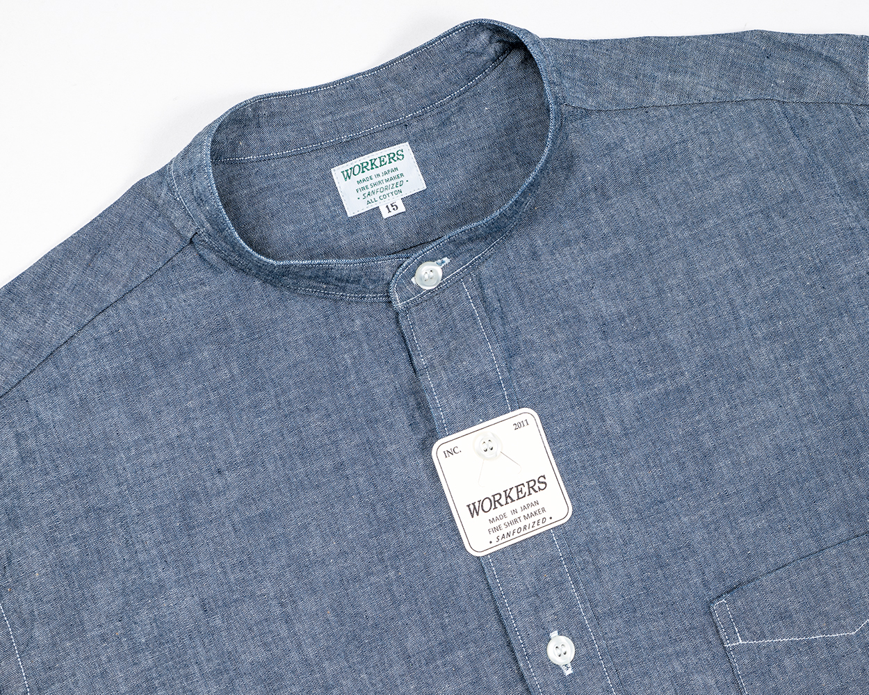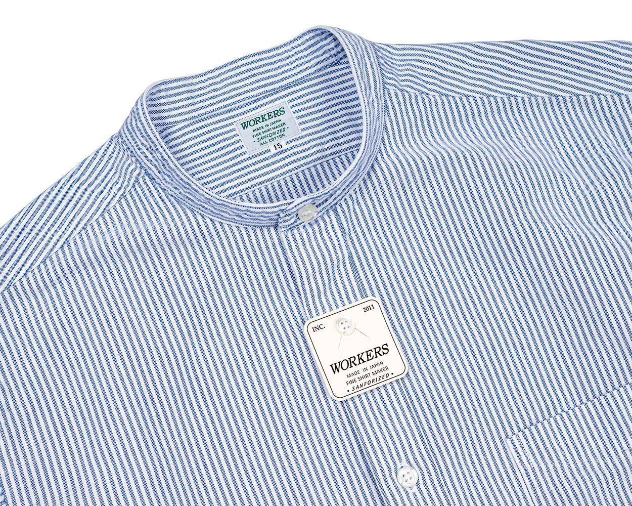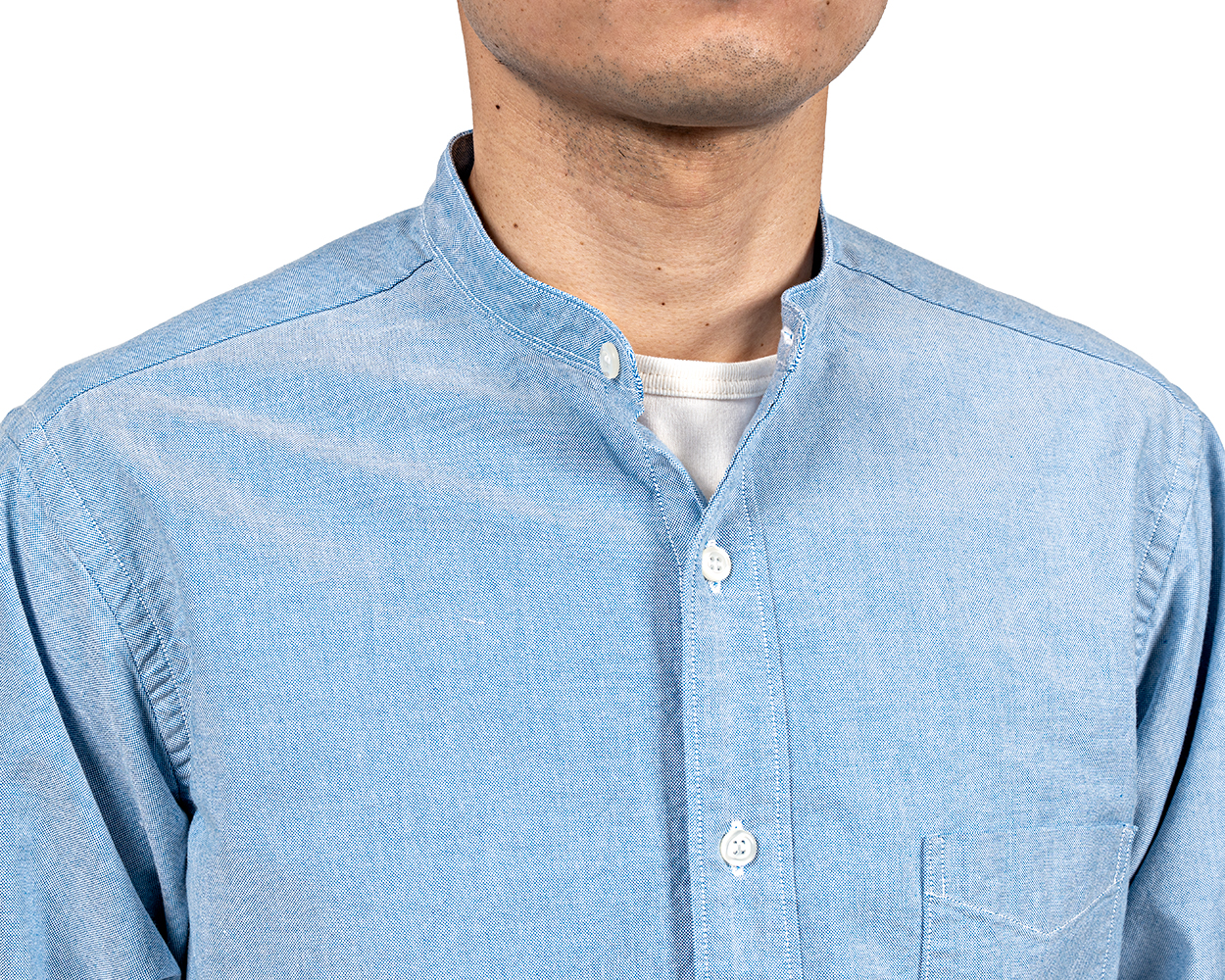 Band Collar Shirt, Supima OX, White Band Collar Shirt, Supima OX, Blue Pale Band Collar Shirt, Supima OX, Stripe Band Collar Shirt, Indigo Chambray