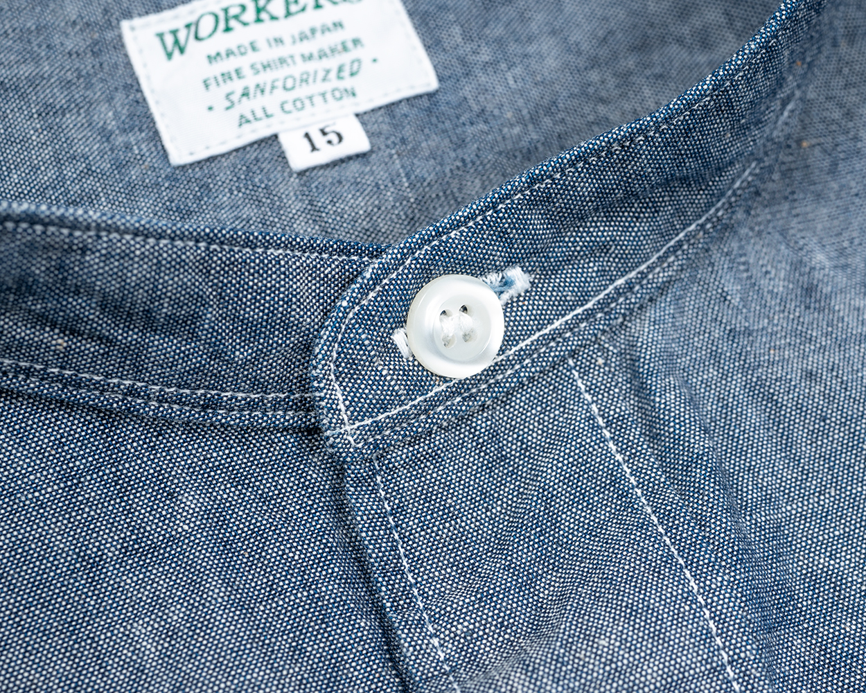 元ネタがハケメという素材だったので、ハケメ、ポプリン、マドラスなど、薄手3オンス系で作ってきました。そういえば、オックス・シャンブレーといったボタンダウンの定番生地は作ってないのよなと気づいて、今回組み合わせてみました。