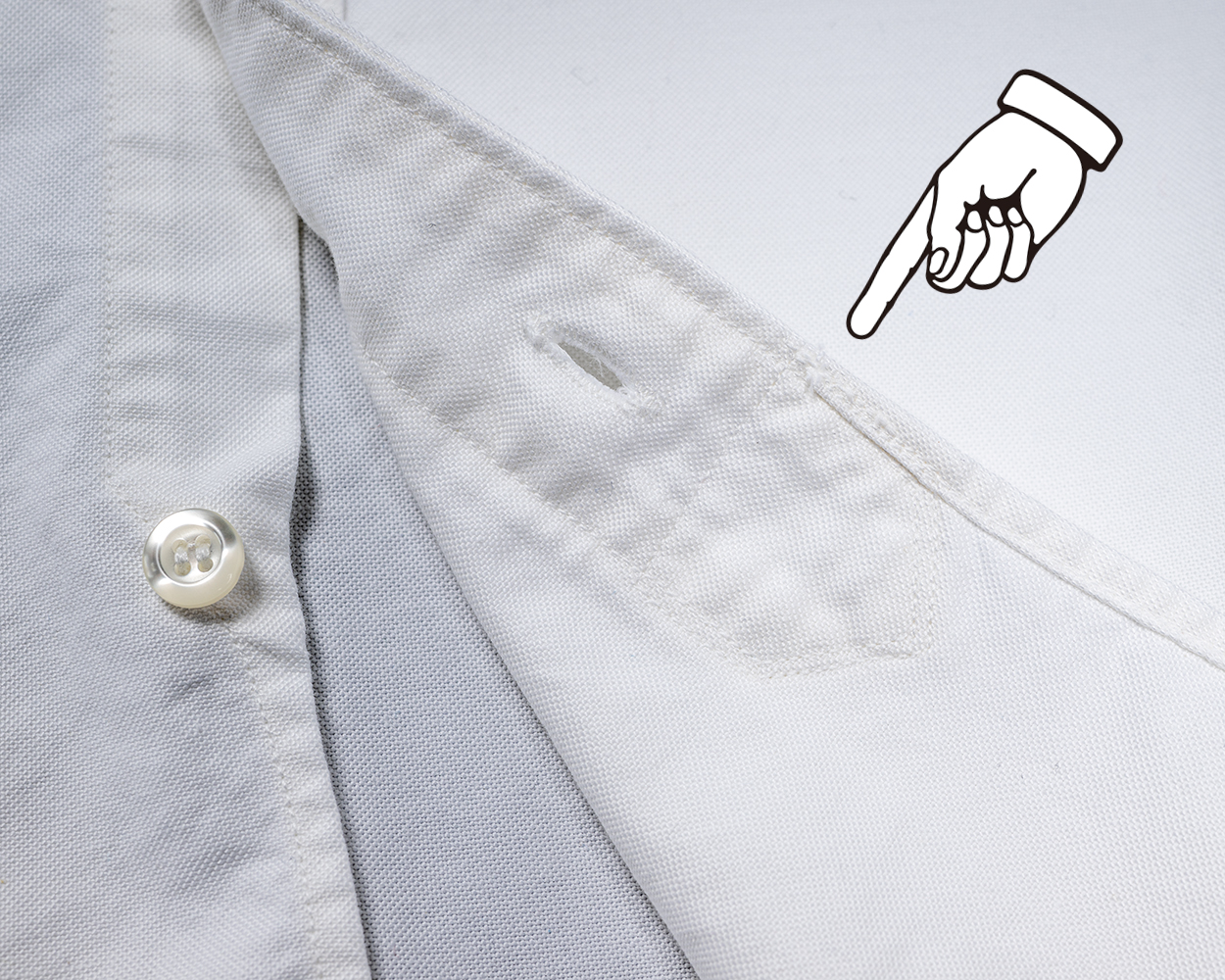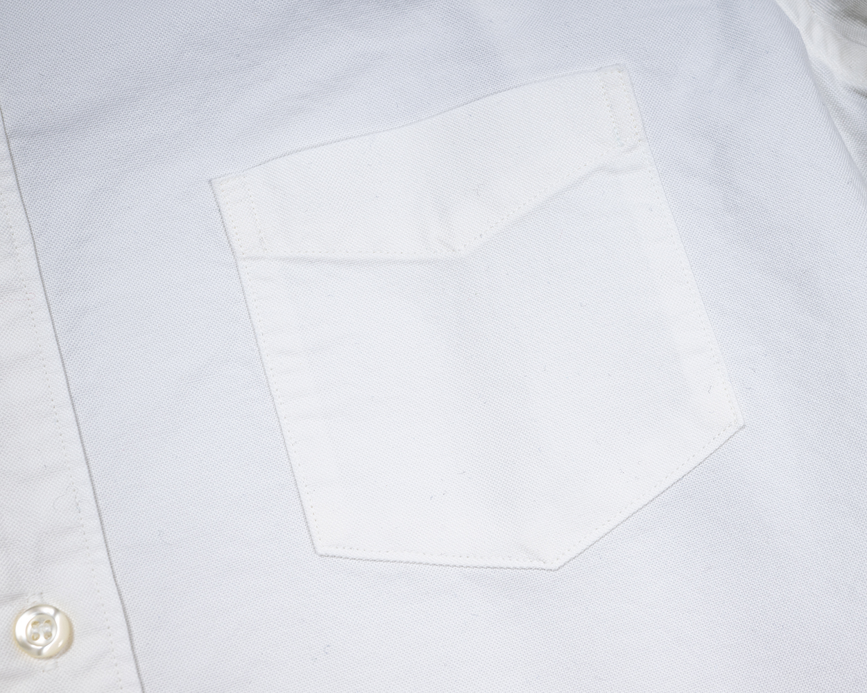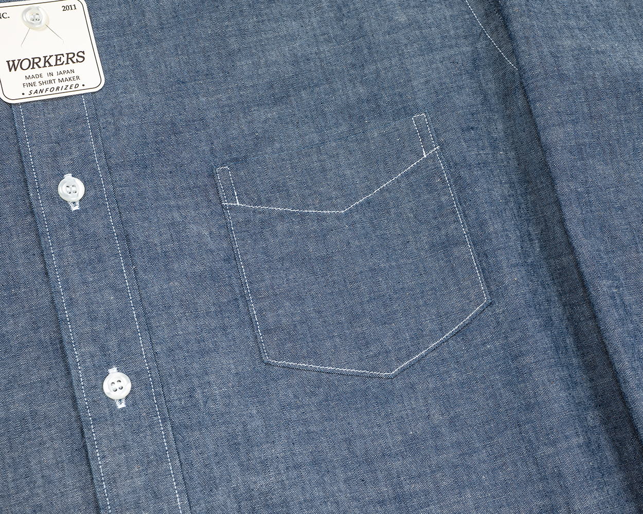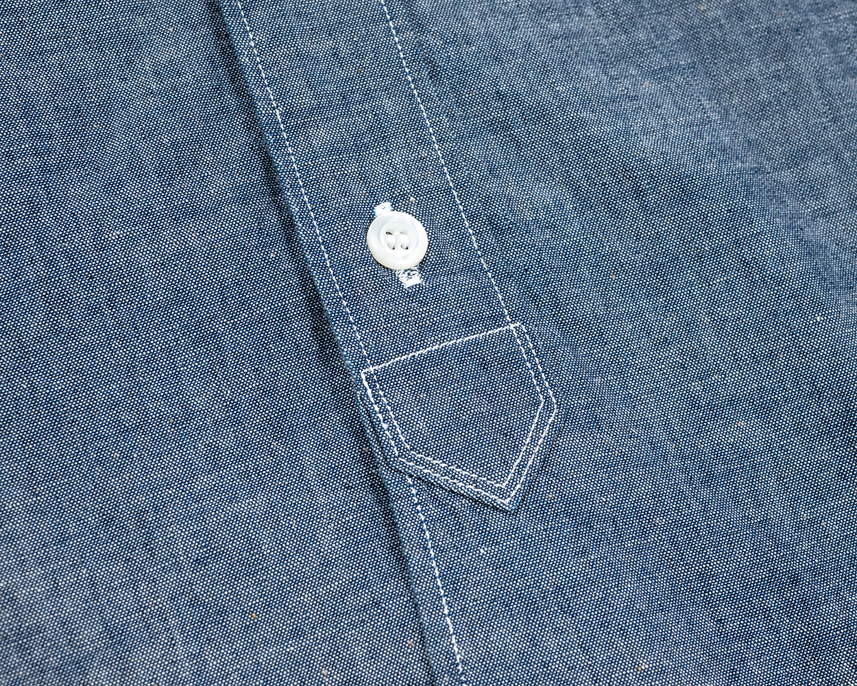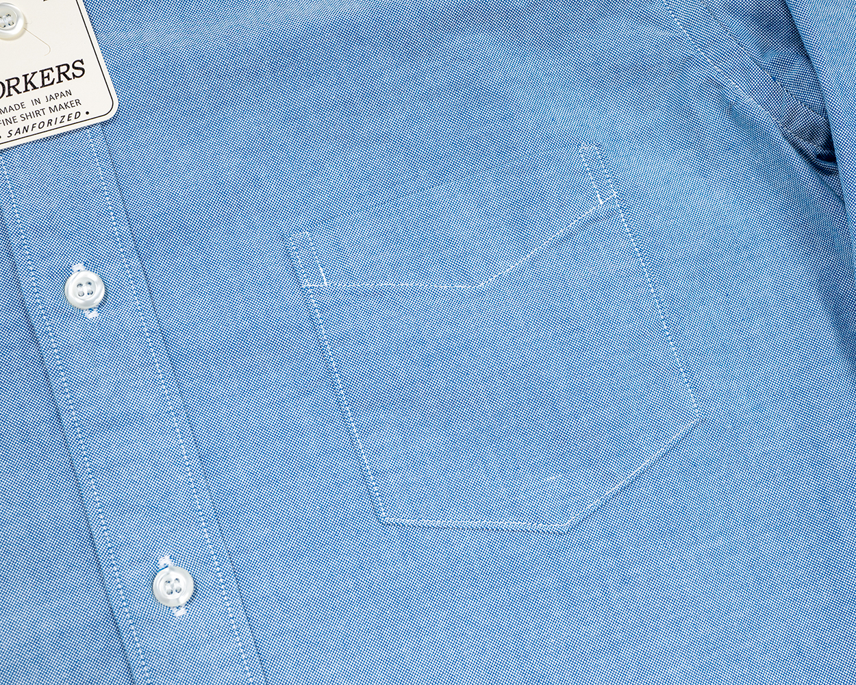 ドレスシャツ的には胸ポケは無しが正解?なのかもしれませんが、使い勝手を考えてつけました。ボタンダウンがいつもたる型なので、ちょっと雰囲気を変えてホームベース型。