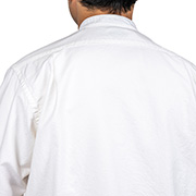 デザインは、おそらくイギリスミリタリー物と思われるバンドカラーシャツから。着丈はオリジナルが80センチを超えるところ、WORKERSは76センチ程に変更。裾を出しても、入れても着られる、WORKERSが考える「Modified」な着丈。