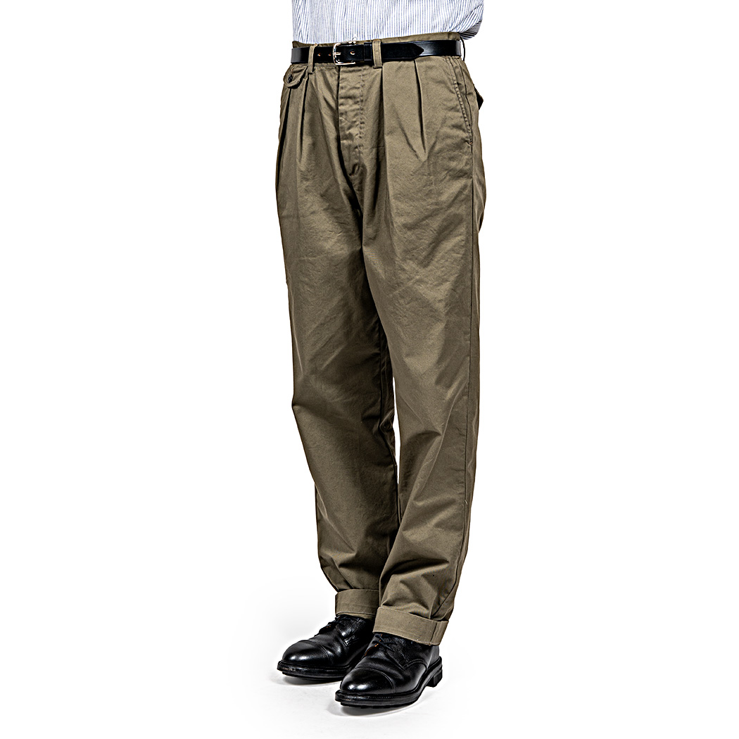 Officer Trousers, 2 Tuck, Khaki No-1, 10 oz Chino |