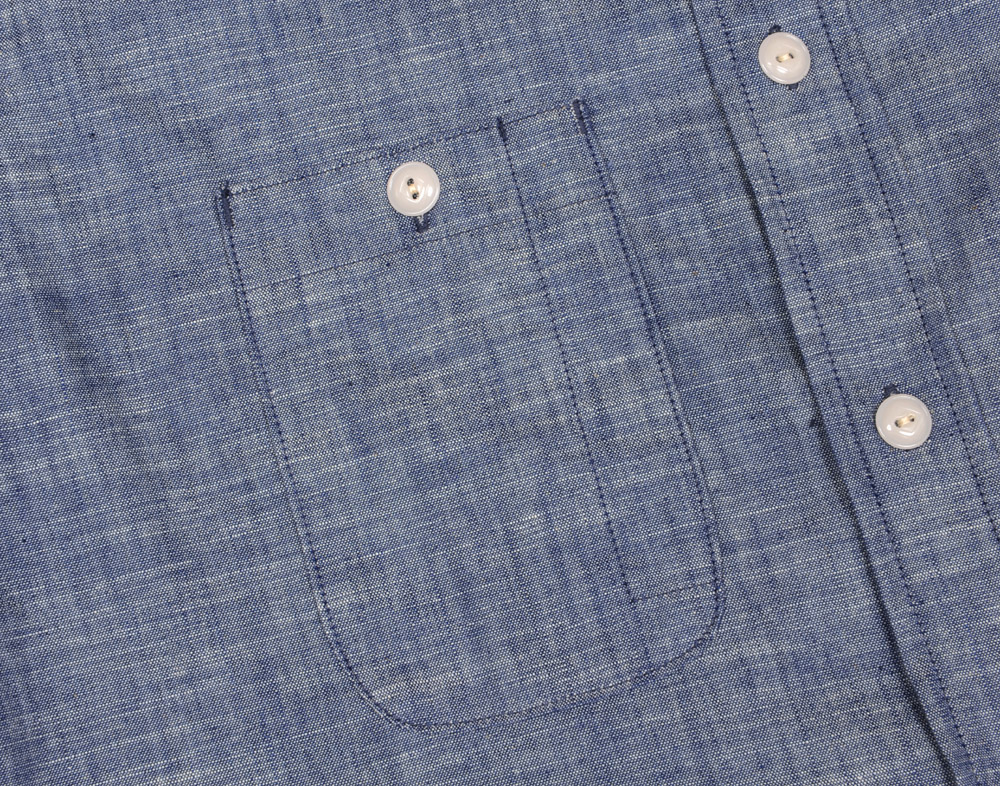 ポケット口はチェーンステッチで、前立て縫いのミシンを転用しています。