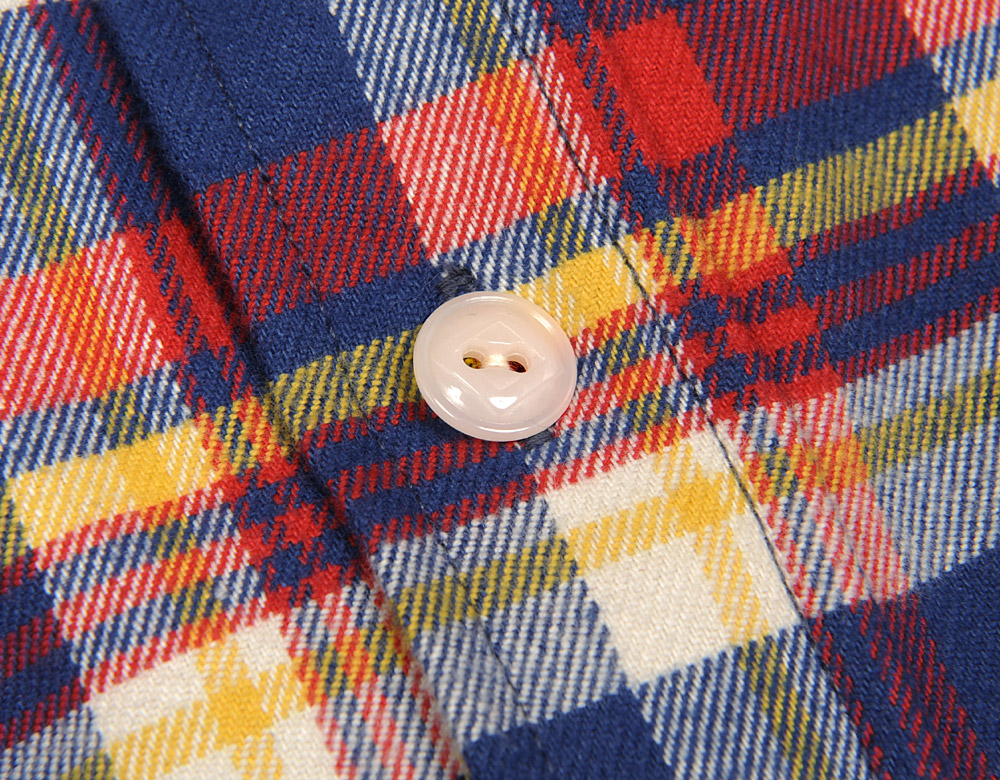 フロント、袖口、襟首などにはリライアンス社のトレードマーク、ひし形の刻印入り尿素ボタンを使いました。