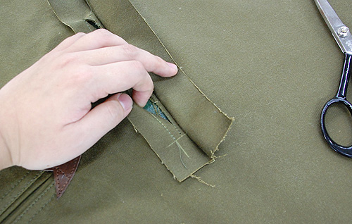 そこからは、ポケットの端に向かって切り込みを入れます。 |