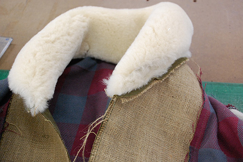 見返しと、地襟の芯には、ジュート(麻)の粗布を使っています。