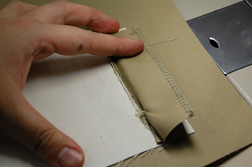 カンヌキを打つ位置までが縫いつけられているのがわかると思います。 |