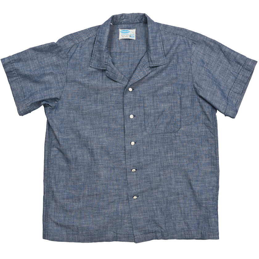 古着でオープンカラーシャツというと、マドラス・チェック地など柄物や、無地にしてももう少し明るいトーンの色が多いのですが、落ち着いた色・定番のシャンブレーも1枚欲しいと思いラインナップしました。