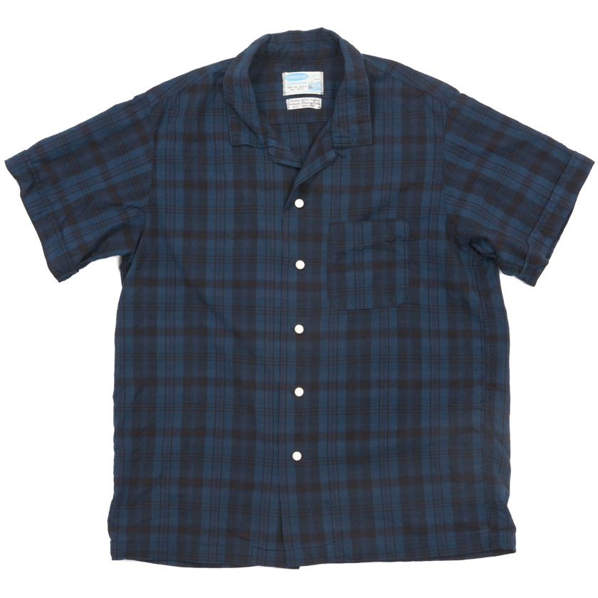 ビンテージ、Pilgrimのオープンカラーシャツを参考に作りました。シンプルな1ポケットのオープンカラーシャツ。